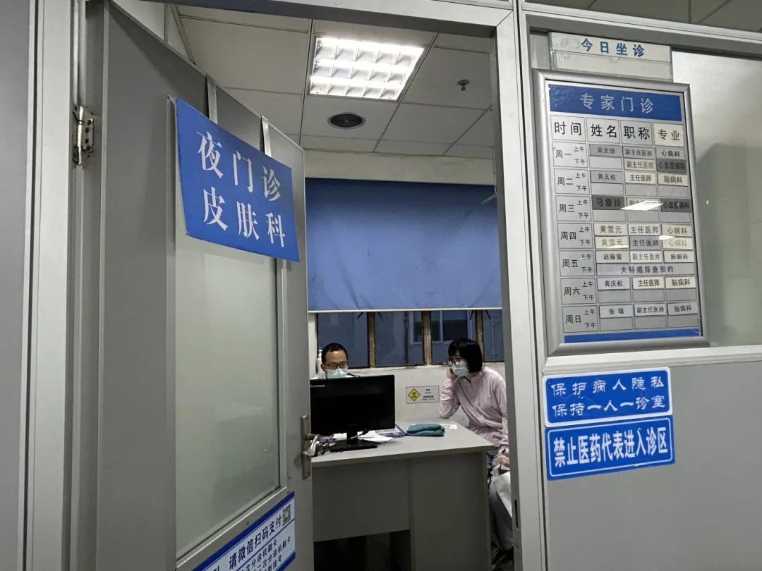 “我们周边跑了几家医院,急诊医生说还是要看皮肤科,针对性更强一点。这边有皮肤科夜门诊,真的太好了。”蒋女士说。
