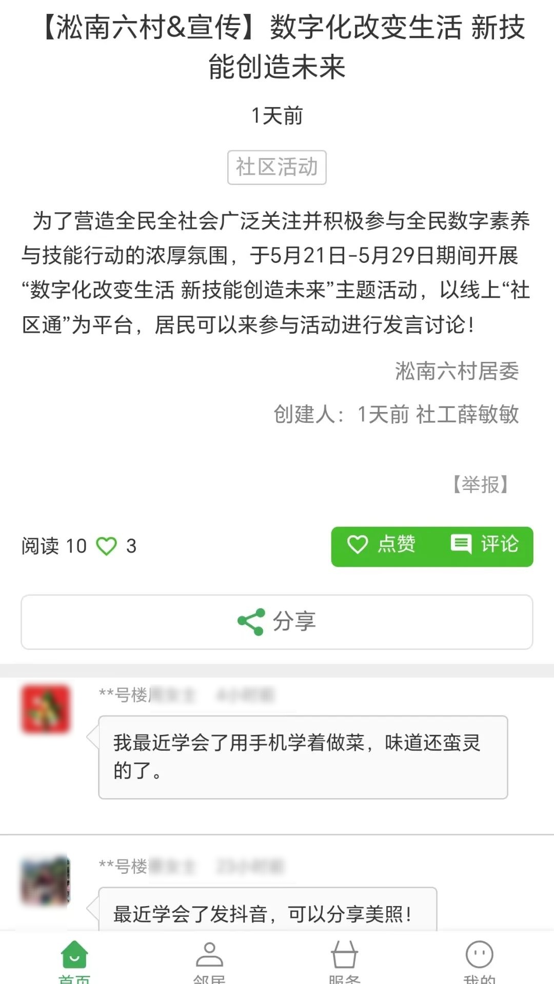 此次活动的开展,提升了居民们的数字素养,引导不熟悉、不了解数字化技能的居民加入了学习行列,推动了社区数字化建设的深入发展。今后,淞南镇各居民区将持续关注数字化技术的发展趋势,开展更多培训、宣传和交流活动,用数字化手段搭建便捷高效的沟通桥梁、展示平台、服务场景,推动数字化建设向更高水平发展,共同创造更加美好的未来。