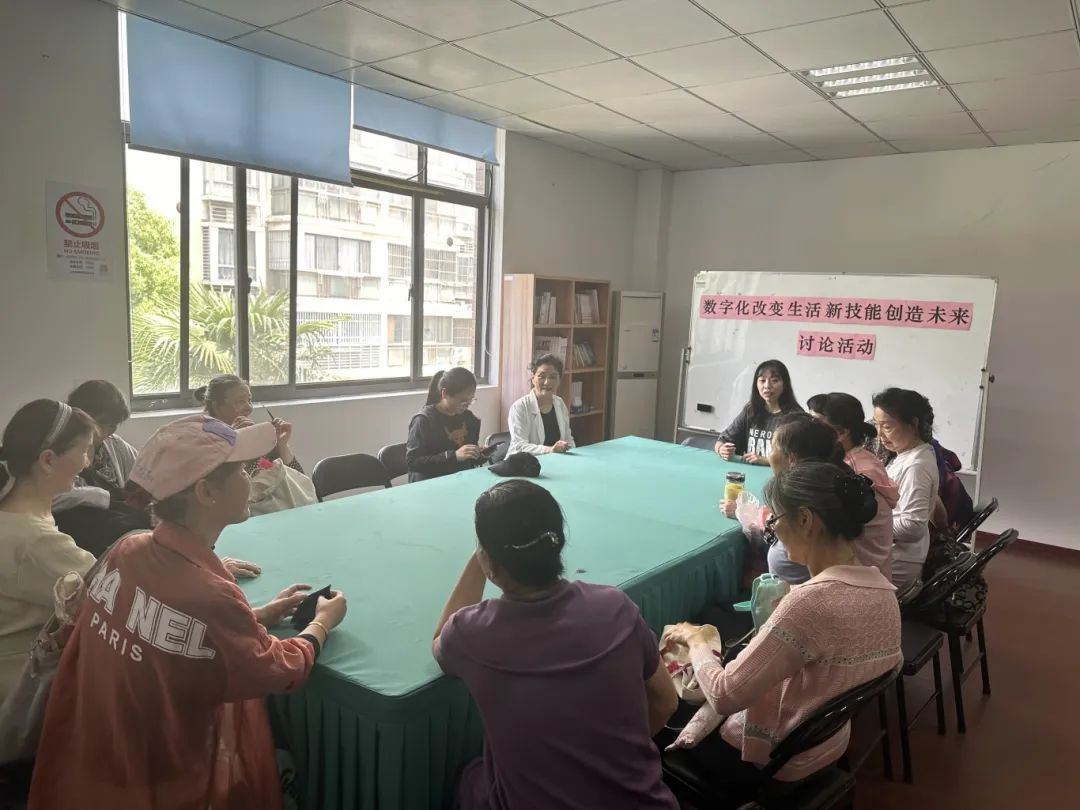 活动现场,居民们积极参与讨论,气氛十分热烈。大家纷纷分享了最近学会的互联网新技能,如在线购物、远程医疗咨询、社交软件使用等,这些技能让他们的生活变得更加多姿多彩。大家畅谈着种种收获,脸上洋溢着喜悦的笑容。