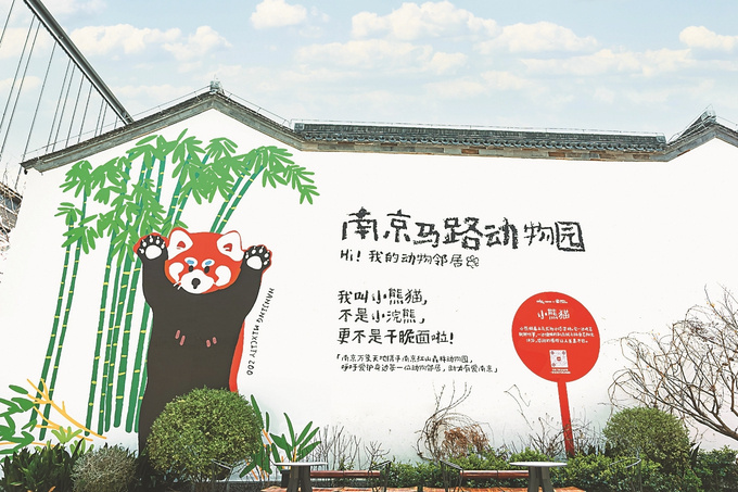 为了增进市民游客对本土动物的了解,更好地保护身边的“动物邻居”,南京万象天地附近的墙画让野生动物科普知识“上墙”。野猪,南京本土动物,酷爱上街刷存在感的“二师兄”,以独特的觅食和排泄方式在林地中推开道路,为其他小动物创造良好生活环境;4月,扬子鳄终于结束冬眠,开始上岸晒太阳啦,它们晒太阳时保持不动,常被人们认为是木头雕塑,其实这是它生命中最自然的状态;獐又名河麂,害羞但敏捷,为保护自己,獐放弃适宜的湿地生境,退居到山林中,希望在未来,我们能帮助它们回到自由自在生活的水边……