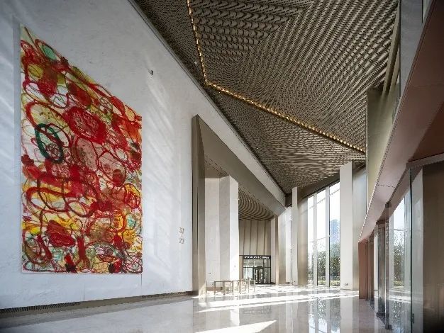 走进大厦,仿佛置身于立体的“艺术宝库”。14米挑高大堂,入眼便是当代艺术家张恩利的画作,人文气息扑面而来。大楼内高区还打造了10个三层挑高的空中艺术企业庭院,画框型玻璃幕墙展现极致视野。面向浦江两岸的风景,金融总部企业可以通过画作、雕塑、装置作品点缀其间,赋予空间艺术灵魂。