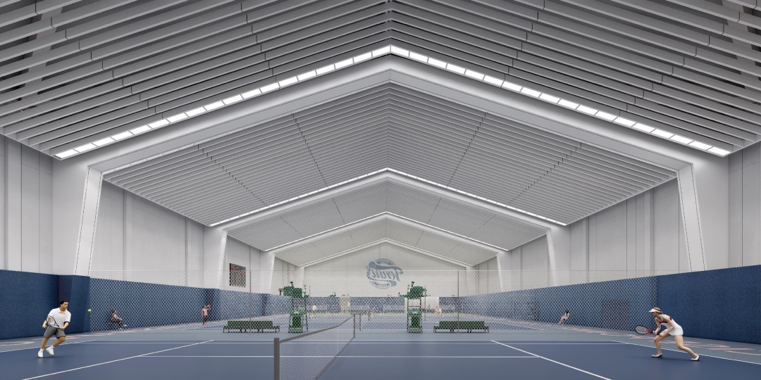 8054平米的场地内,包含10根国际标准泳道的游泳中心,标准的赛事级网球场、羽毛球等综合场馆,满足不同人群的运动需求。未来,这块运动中心将对公众开放,定期举办赛事和各类社群活动,致力于打造为城市新锐运动社交平台。
