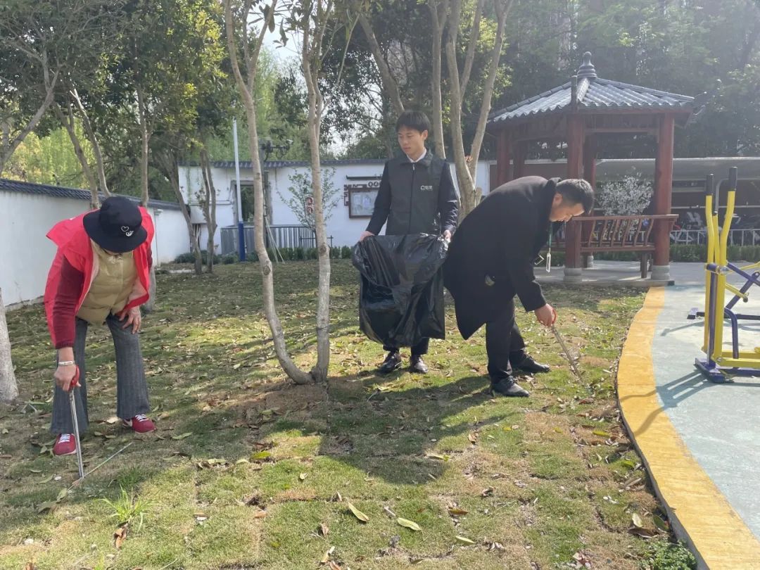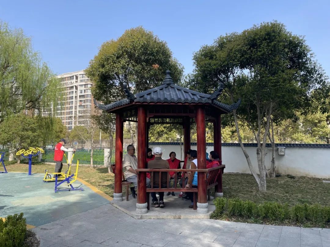 美好环境人人共享的同时也需要人人爱护。社区充分发挥共治力量,联合共建单位链家绿丝带志愿站对接二支部共同认领北门凉亭,融合周边环境打造“清馨点位”,通过开展“凉亭议事会”“环境整治日”等活动共建美好社区。