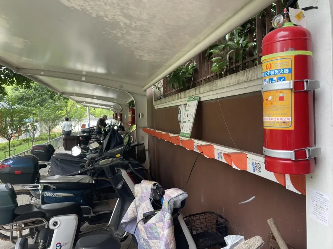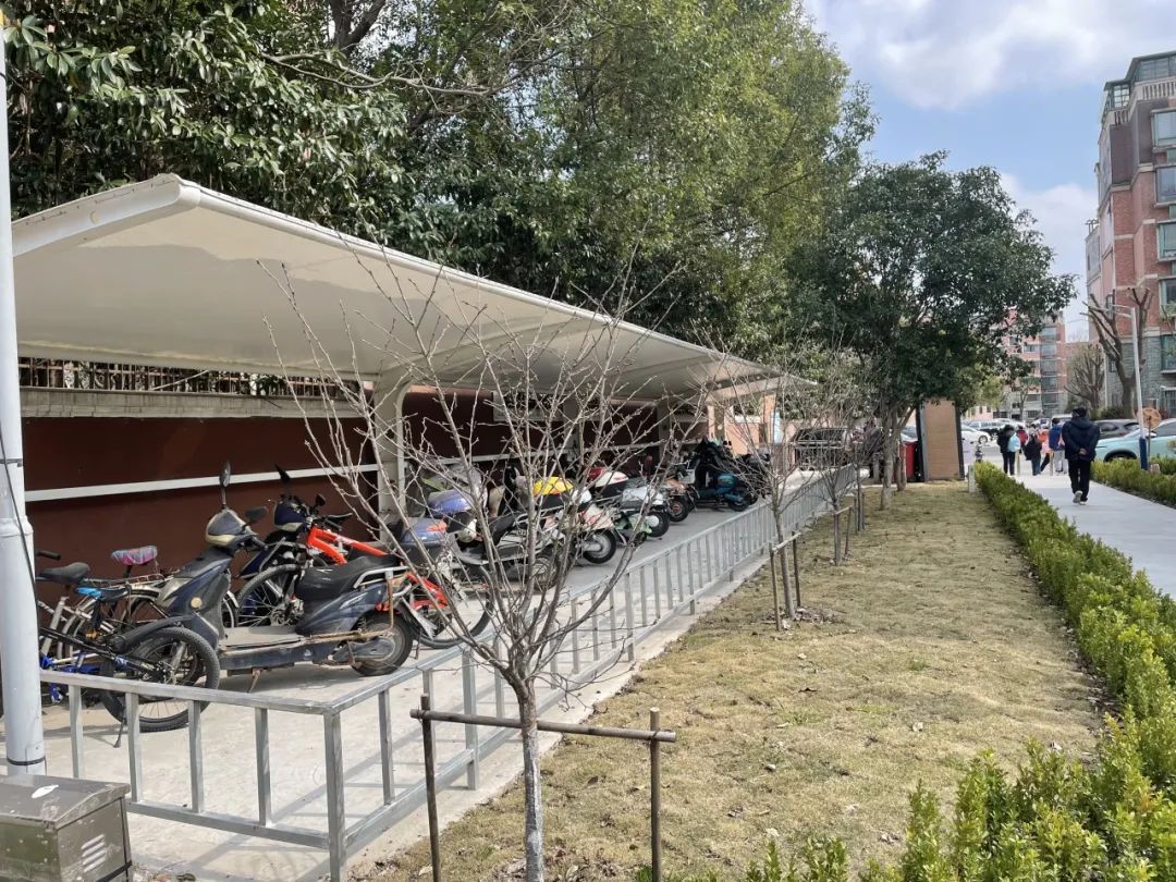 微更新第一步就是在垃圾箱房背面铺设小路直通小门,居民进出再也不用从垃圾桶前经过了。在居民的建议下,社区利用靠墙的空间搭建电动自行车停车棚,设置充电设施和消防设施,方便周边楼道电动自行车停车充电。