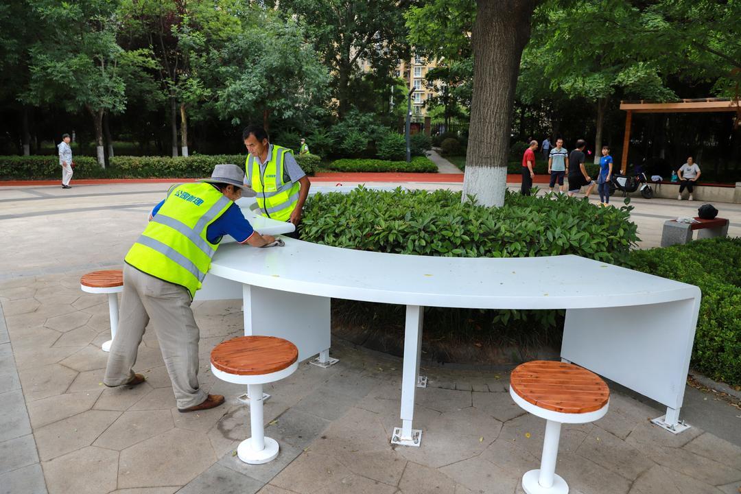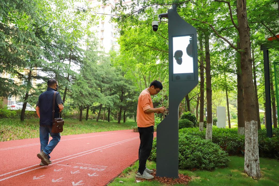 升级改造后的深圳路体育公园内智慧随处可见,路灯是集照明、音响、监控、传播、手机充电于一体。