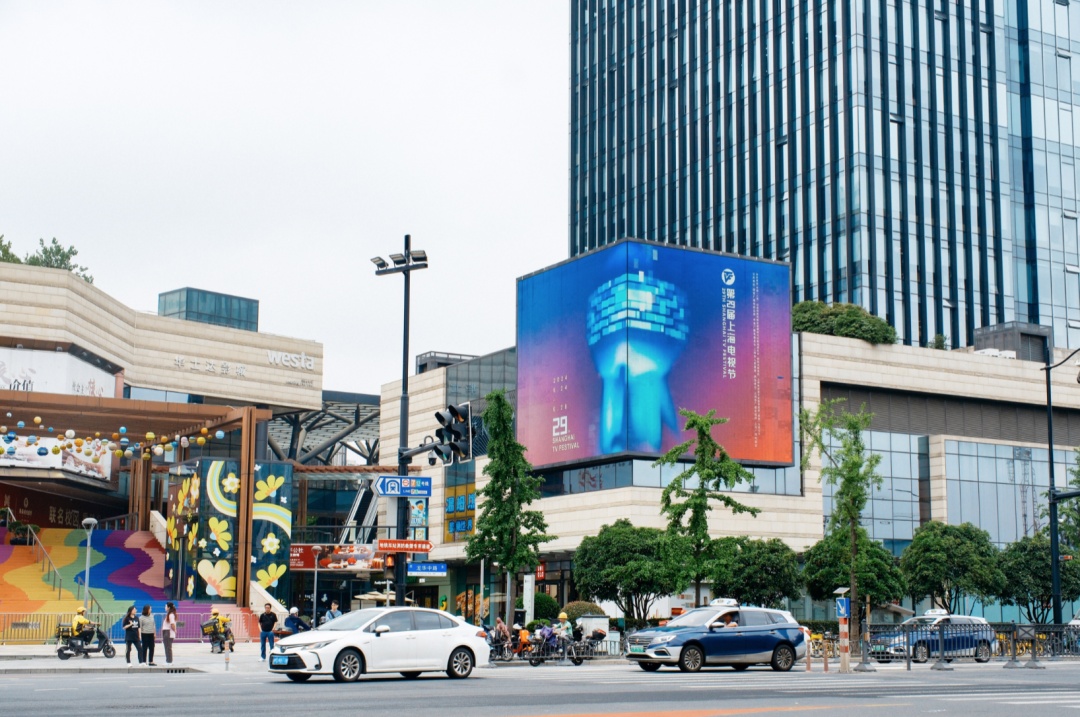 今天(6月14日),第26届上海国际电影节开幕,第29届上海电视节也将于6月24日至28日举行,上海正式步入“双节”时间,独属于上海这座城市的“光影”韵致拉满。在徐汇区这一电影文化的重要承载地,色彩鲜明的海报和颇具视觉冲击的视频出现在商圈、主干道以及居民区,预示着一场光影盛宴即将呈现。