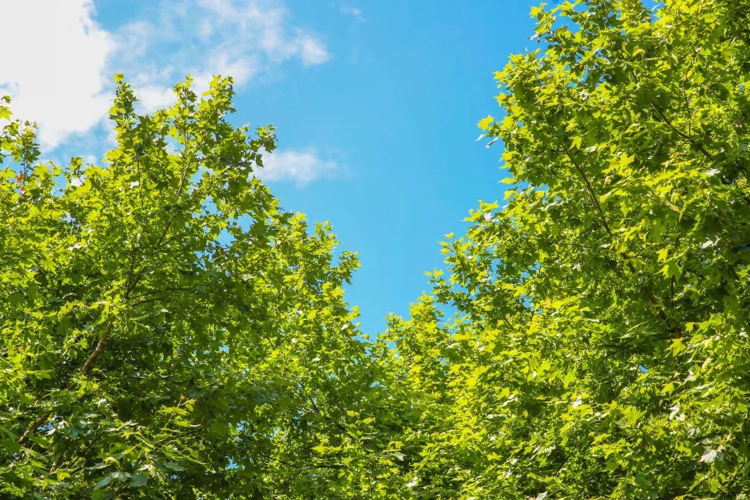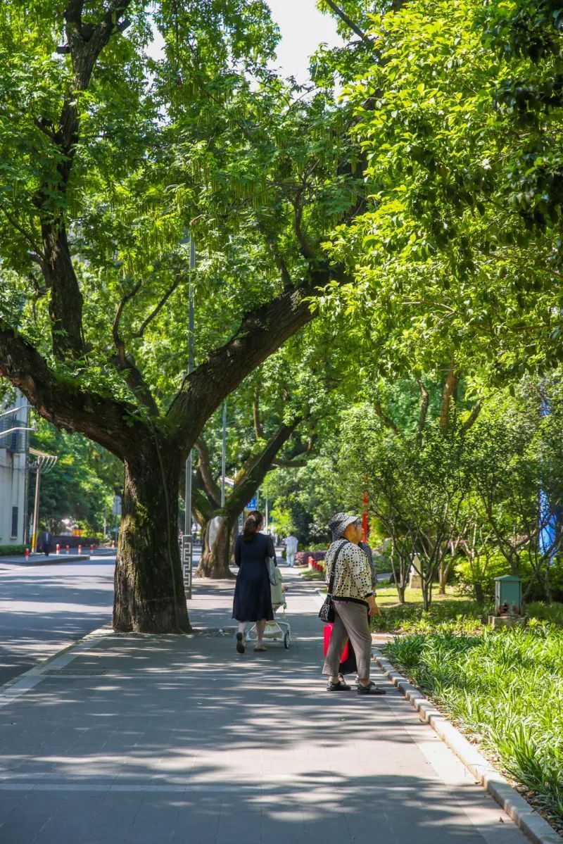 郁郁葱葱的行道树尽情舒展着身姿,茂密的树冠在遮挡烈日的同时,也给城市增添了许多浪漫气息。
