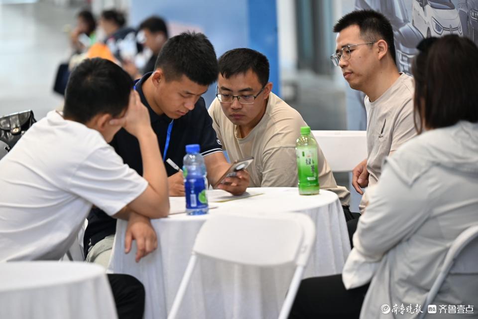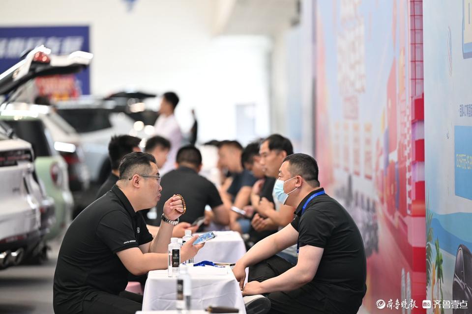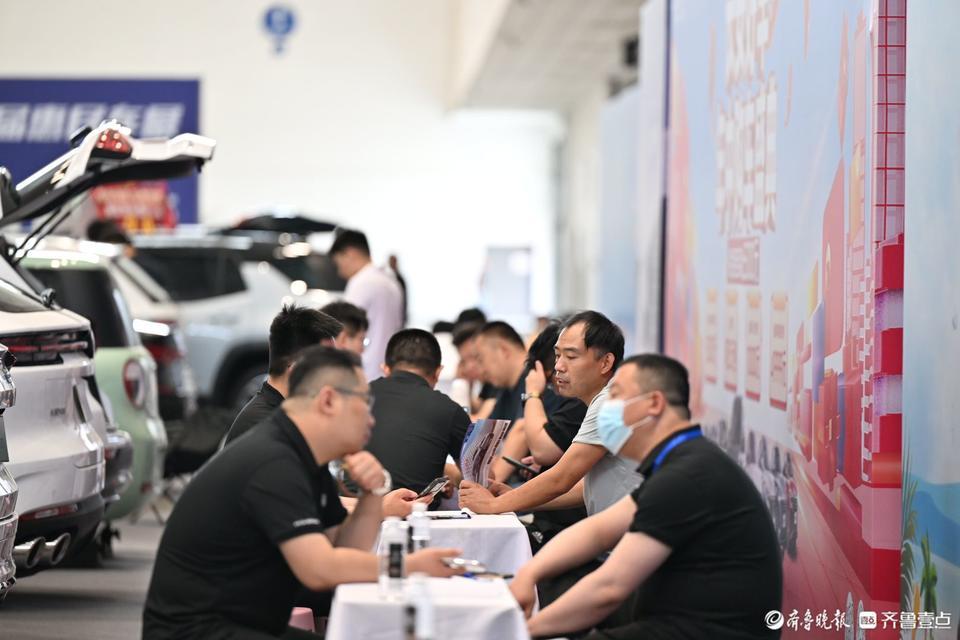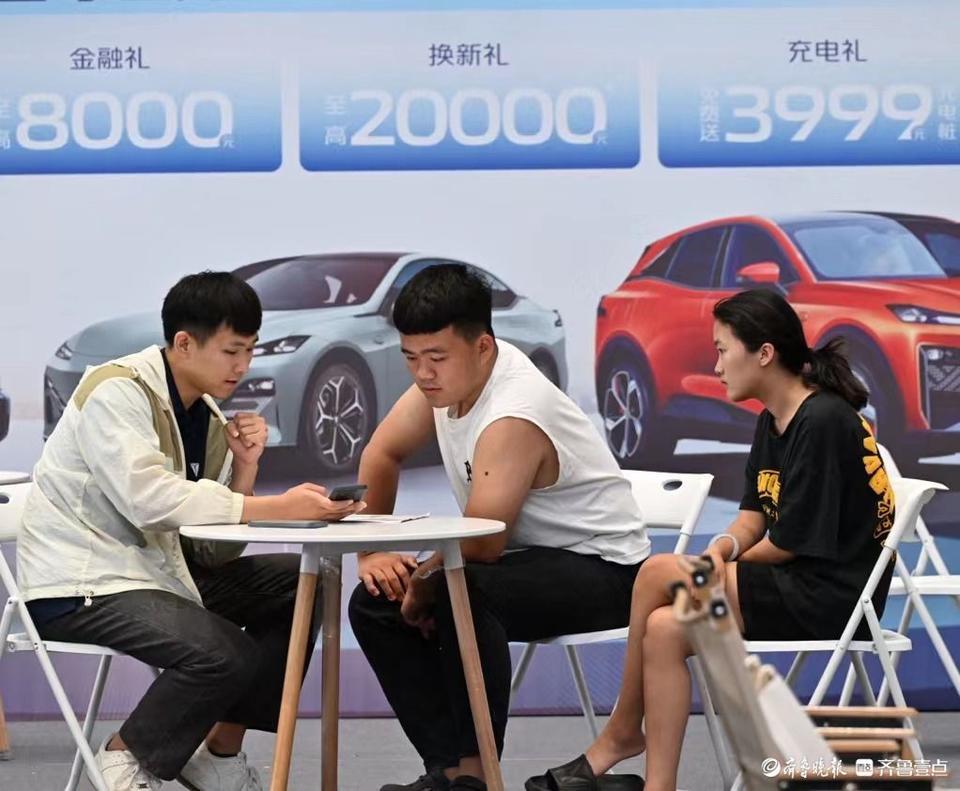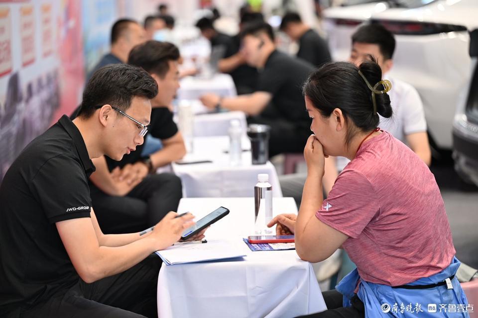 16日,在山东国际会展中心举办的“约惠槐荫•第二届惠民车展”进入第二日,市民相中了心仪的车型后,和销售人员坐在洽谈区,开始商议最优惠的价格和最合适自己的配置。