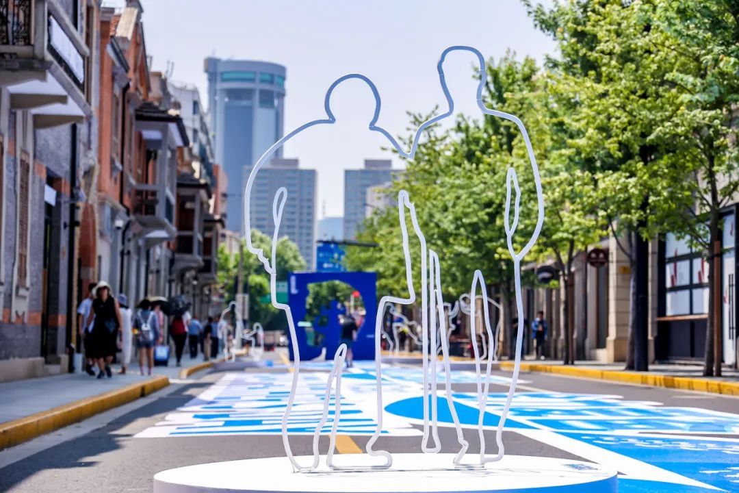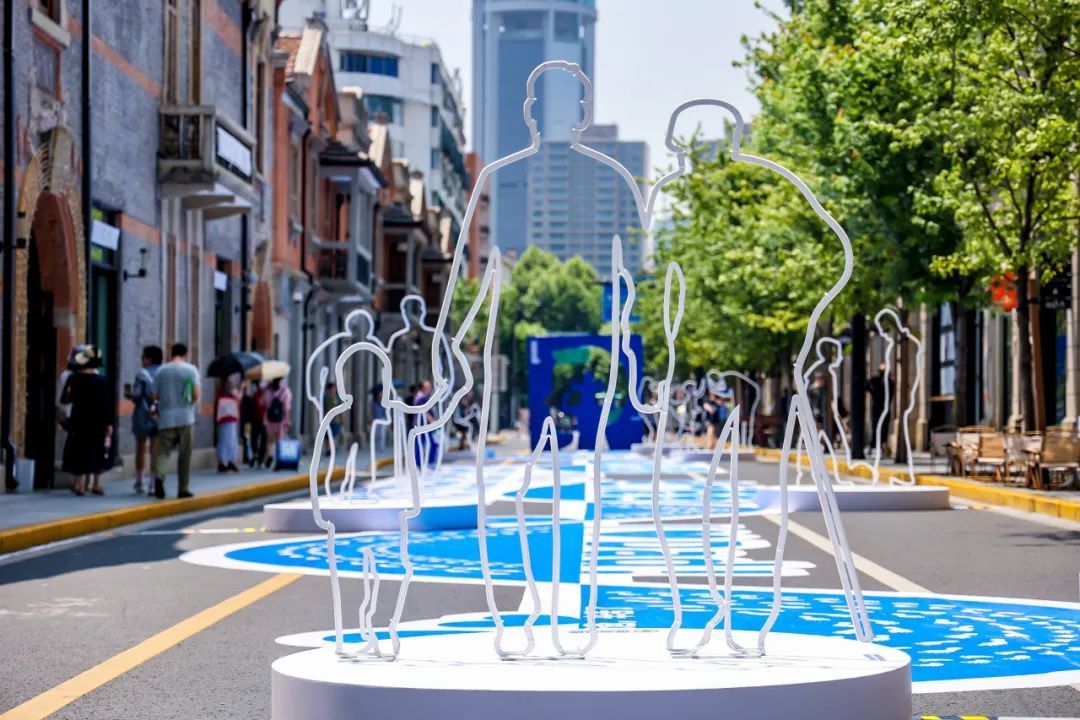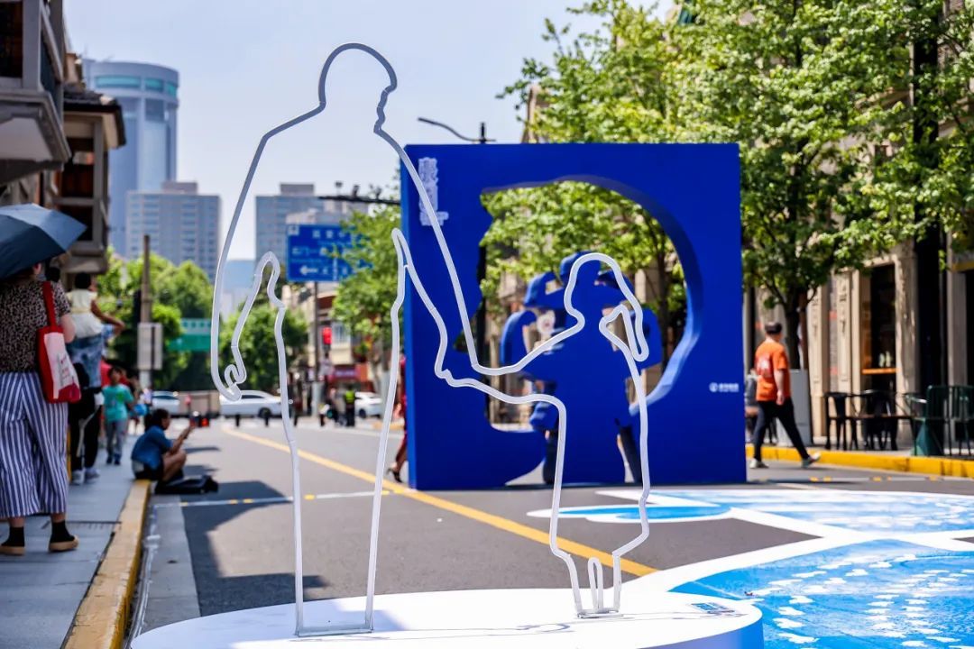 不同于工作日的车水马龙,如今的茂名北路限时步行街上只有悠闲漫步的行人和一组名为“逐光园影”的艺术装置。