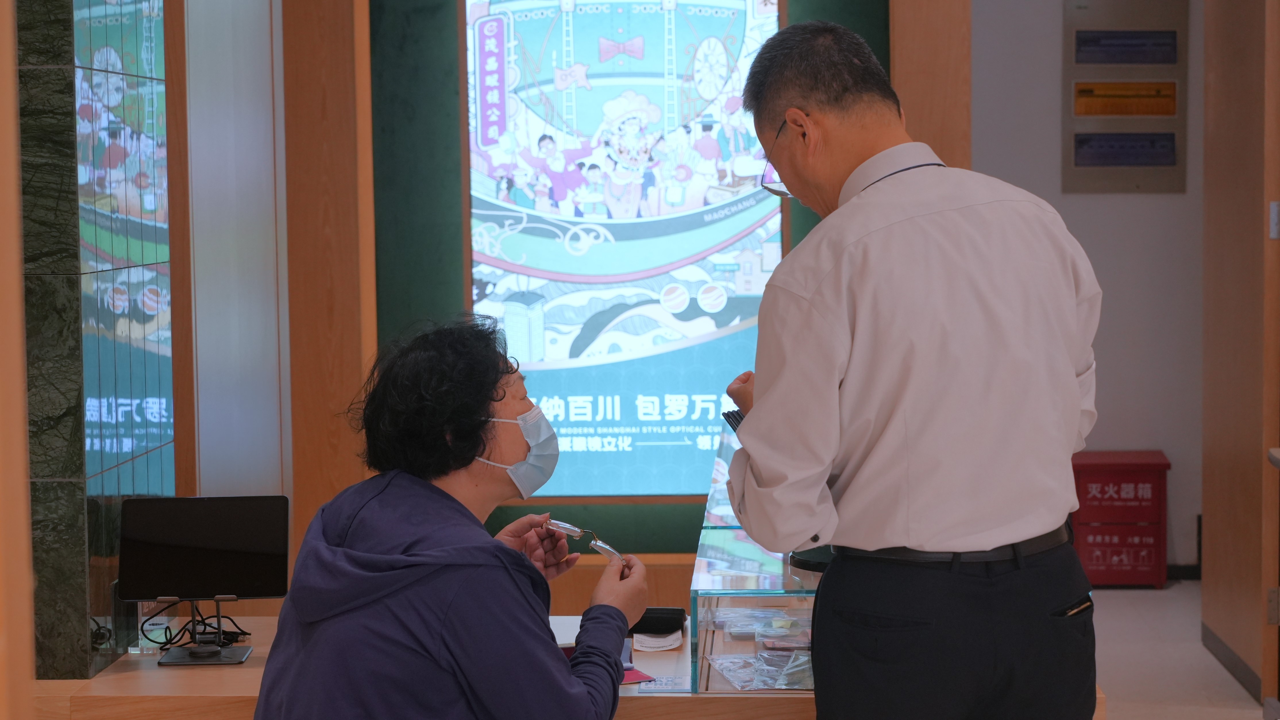 茂昌一九二三镜界南京西路店内,消费者正沉浸于数字化、个性化、标准化、可视化四维一体专业验光服务,这一升级是茂昌眼镜与全球知名品牌蔡司共同呈现,为消费者提供更专业的服务及解决方案。结束后,每位消费者皆可获得专属可视化验光档案,有效管理个人视觉健康。