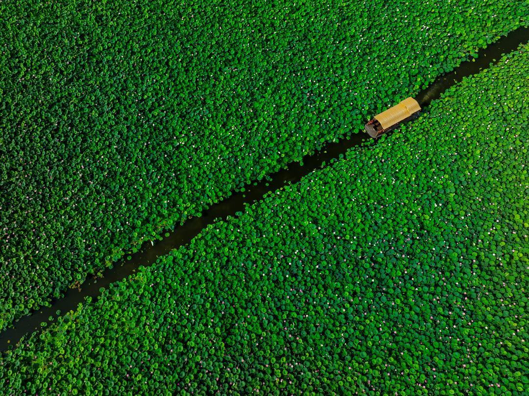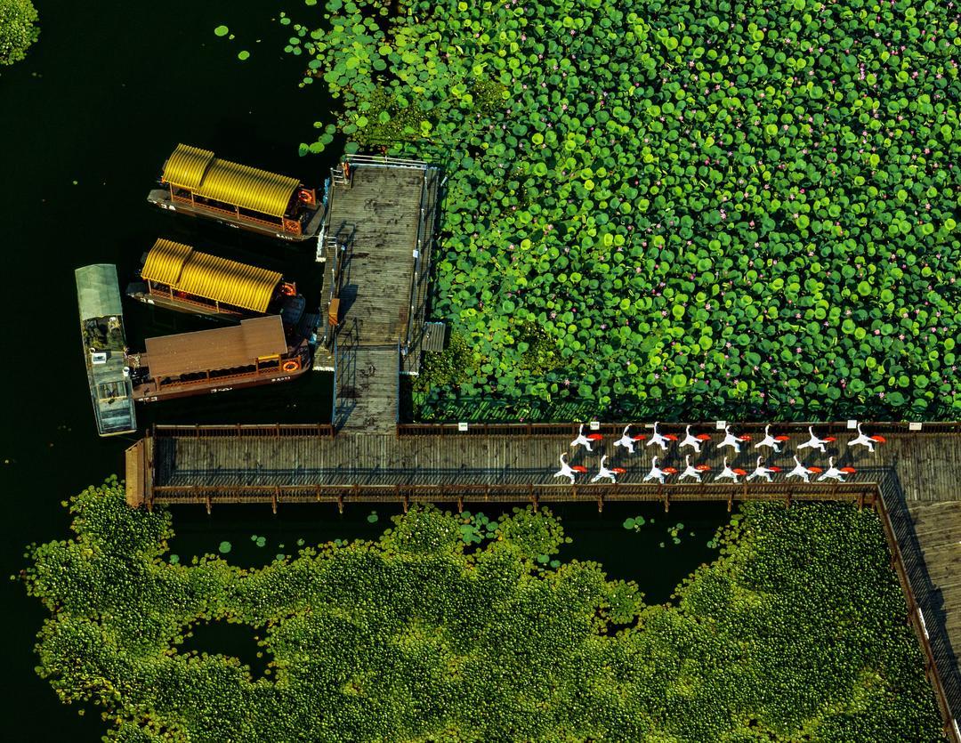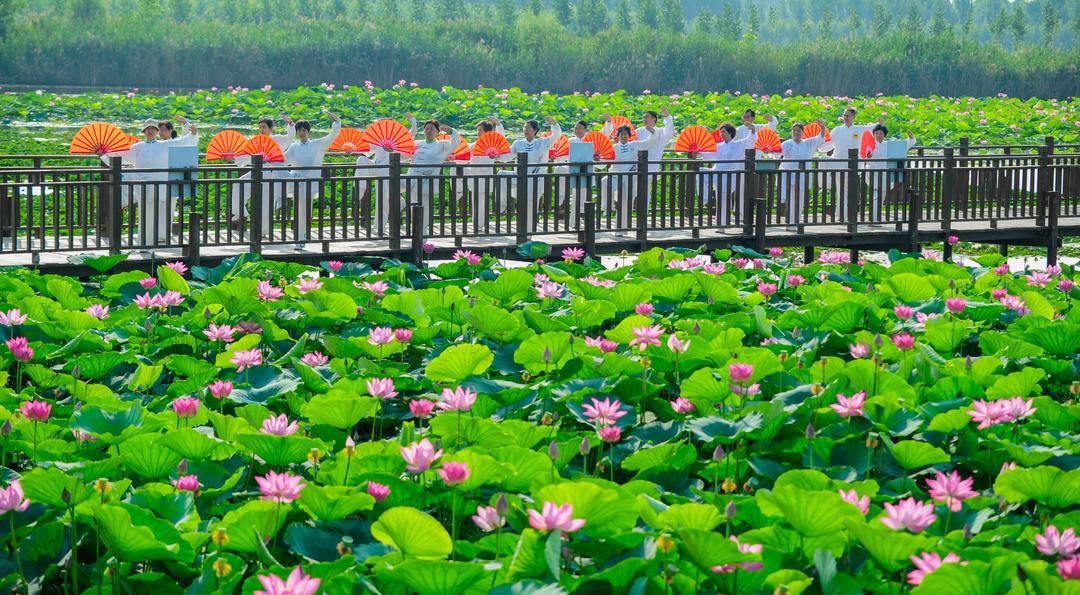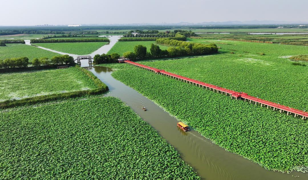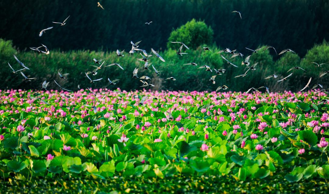 接天莲叶无穷碧,映日荷花别样红。盛夏时节,微山县微山湖湿地万顷荷花倾情绽放,千般姿色,绚丽如霞,荷香淡淡,映红无边,吸引不少游客前来赏荷闻香,沉醉其间。