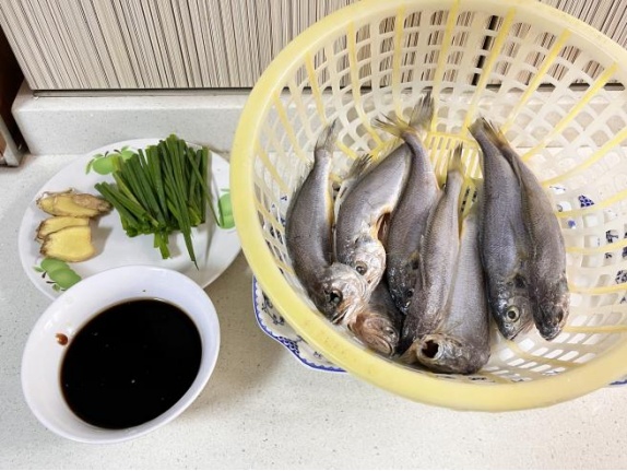 材料:新鲜小黄鱼、食盐、生姜、葱段、生抽、蚝油、料酒、食用油