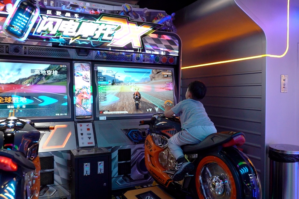 “这辆摩托车的座驾体验非常逼真!过弯飙车的同时,还有鼓风机在正前方吹动发丝,营造一路飞驰的体验感!”