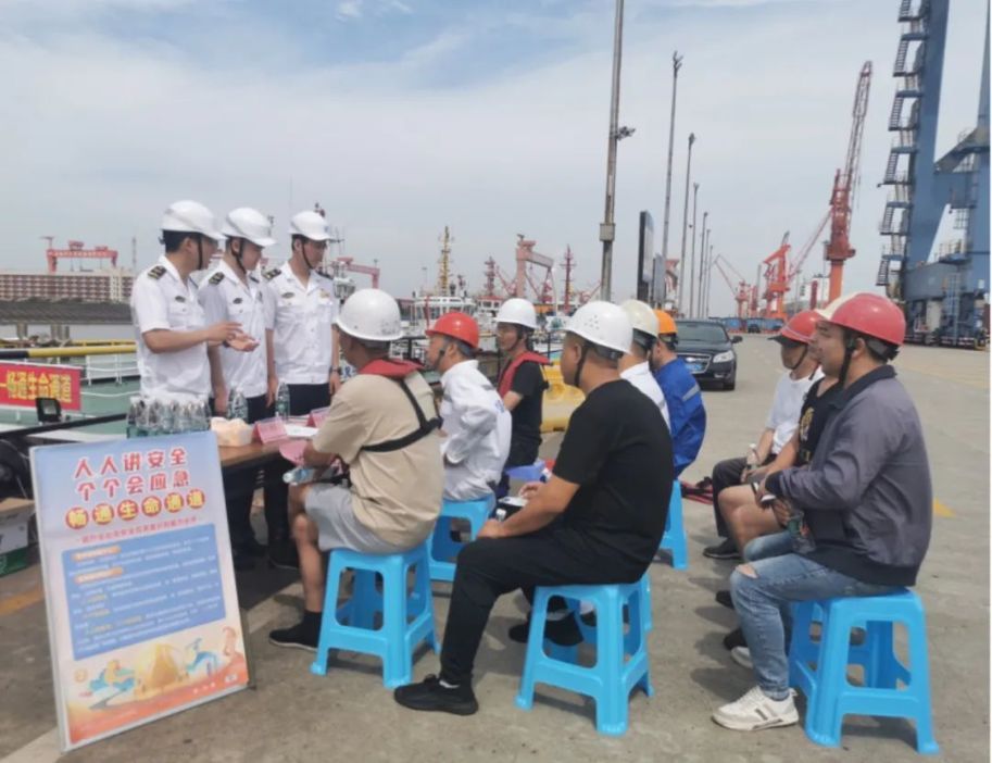 同时,结合本年度安全生产月“人人讲安全,个个会应急——畅通生命通道”主题,走进码头、走上船头,“心连心”讲解近期发生的水上安全事故典型案例,深入分析事故发生原因、处置经过和安全警示,推动安全发展理念更好地入脑入心。此外,宣讲人员还结合“队长”接待日,针对船员热切关心的跨辖区进出港报告、船舶转接岸电、船舶能耗数据报告等方面问题,实施“手把手”教学,专人“一站式”演示指导服务,解决群众急难愁盼问题。同时提醒高温天气、汛期即将来临,要重点关注船舶生命通道畅通情况,定期维护检查消防设施,做好防台防汛各项准备工作,认真排查各个环节存在的隐患与风险,抓早抓小,避免各类事故的发生。