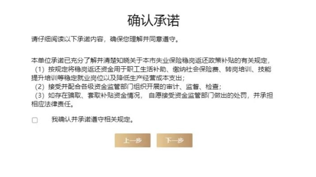 4. 确认无误,点击下一步,阅读相关承诺内容。承诺内容勾选后,点击下一步,保存后进行提交。(意愿只需确认一次,未确认的在政策实施期内均能确认。)