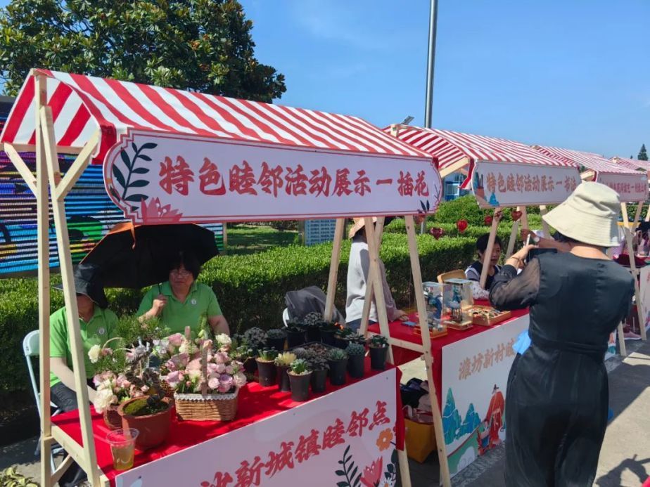 活动现场还设置了多个睦邻点展示摊位,来自各镇的睦邻点纷纷展示各自的特色睦邻活动,有插花、书法、毛线编织、创意土布等。