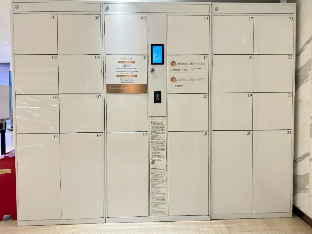 寄存数量:寄存柜共计24个,20寸以上行李箱可寄存,数量为6个