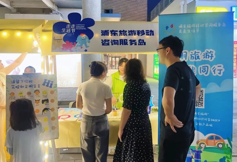 近日,在张江纳仕国际社区“走走生活节”上,浦东新区移动旅游咨询服务岛正式亮相,本次旅游咨询服务的主题为“说走就走,文明出游”,吸引了大量市民、旅客驻足咨询。