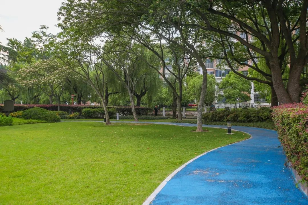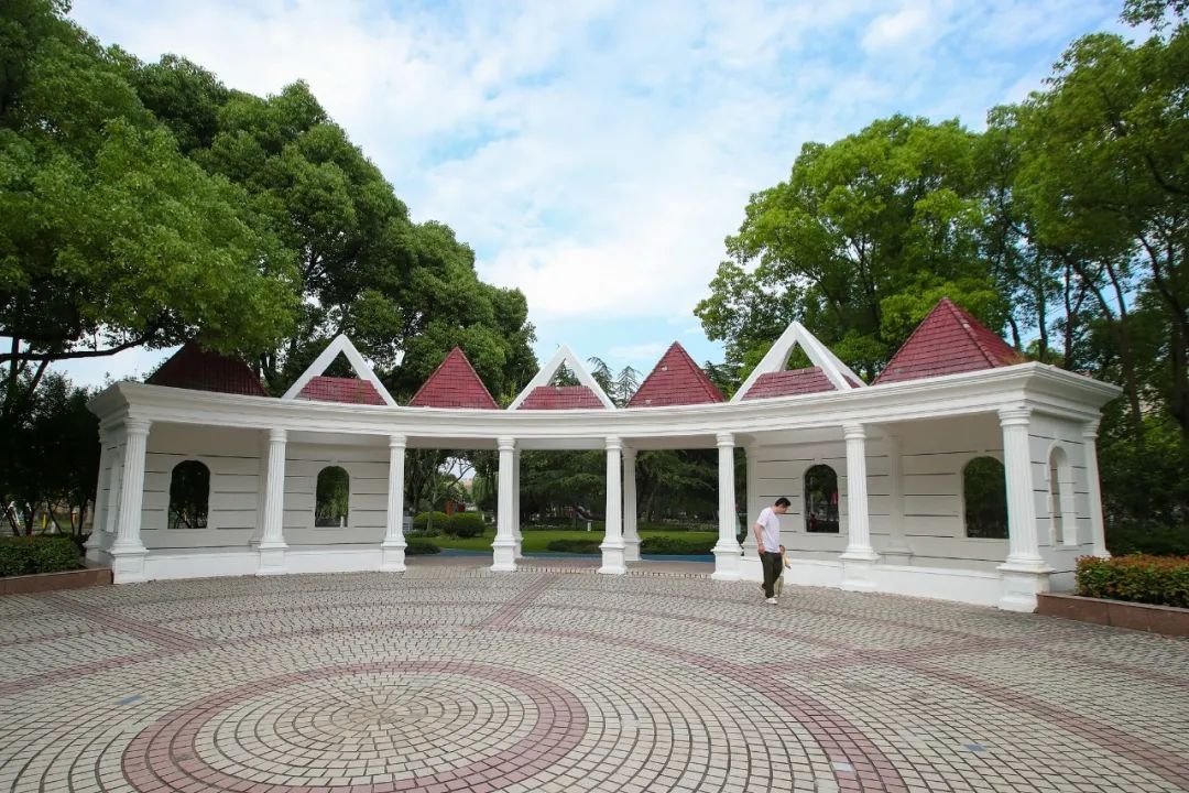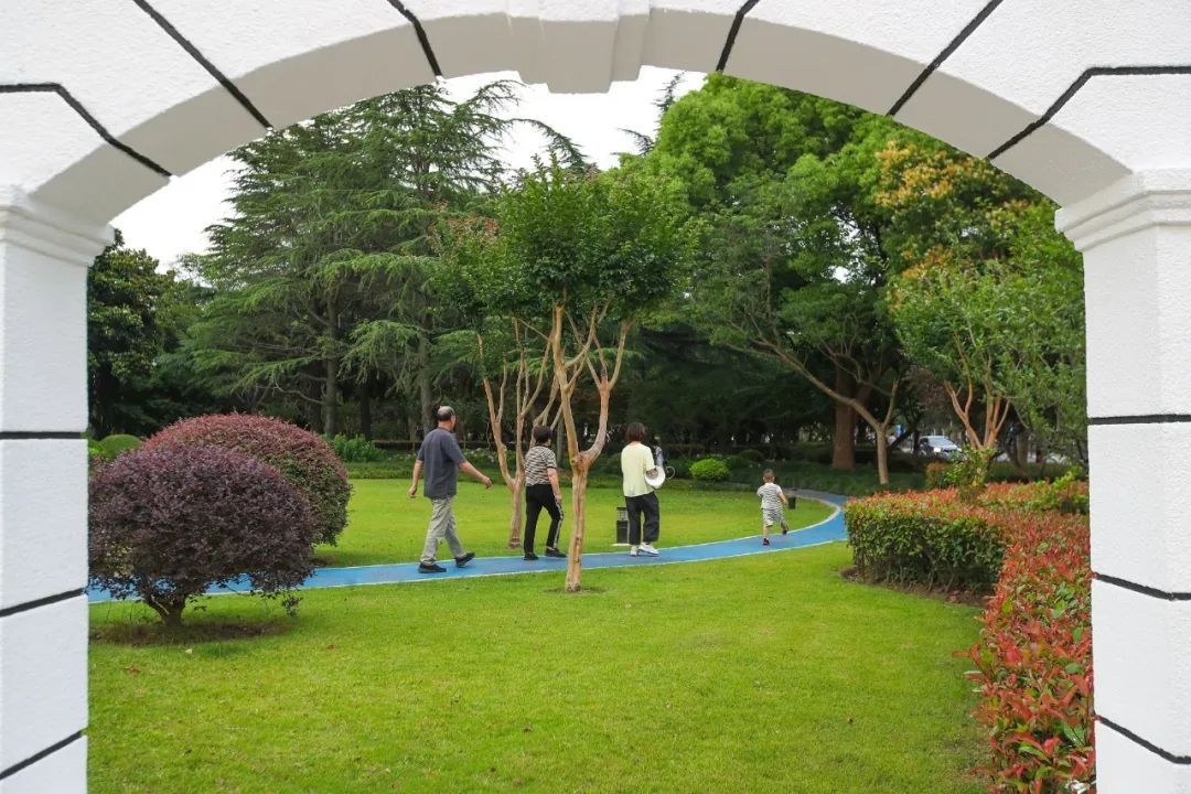 走进公园,只见有小广场、健身步道、休闲座椅等设施以满足周边居民的日常休憩需求,提升了绿地使用功能。公园以绿、白、红为主色调,将园林小品和绿化融为一体,使整座公园充满了现代化气息。