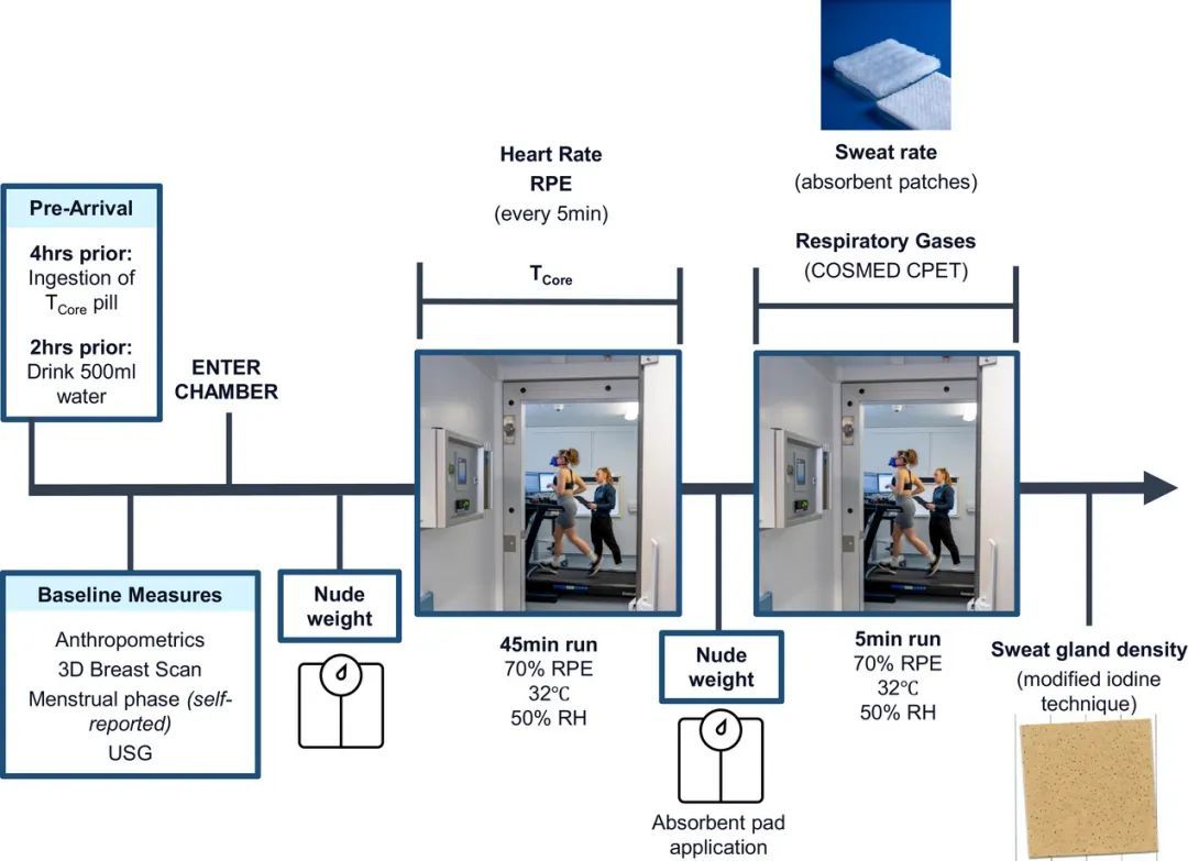 排汗主要受体型、新陈代谢和环境条件等因素的影响。然而,研究小组假设,乳房大小也会影响乳房的排汗量和身体活动时的舒适度。