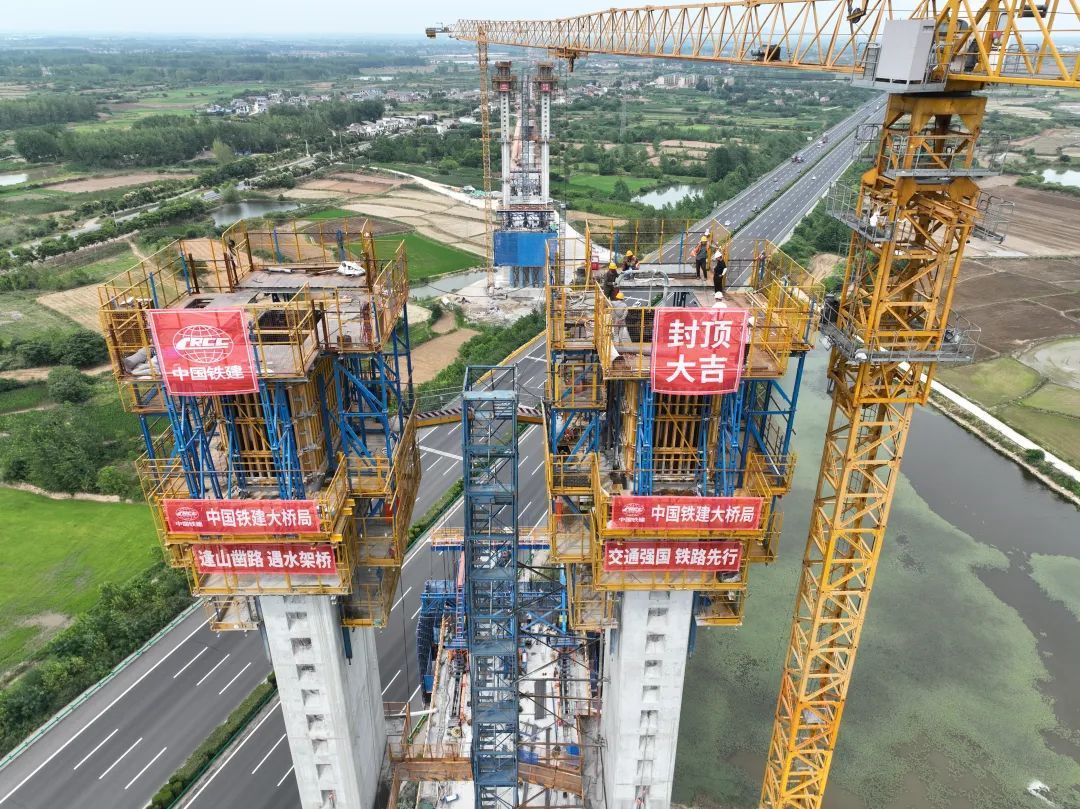 中国铁路上海局集团有限公司介绍,6月18日17时25分,在合肥市肥东县包公镇跨G40沪陕高速公路特大桥施工现场,经过约6个小时的连续灌注,上海至南京至合肥高铁安徽段跨G40沪陕高速公路特大桥主桥两个塔柱顺利封顶,大桥建设取得阶段性进展。详见↓