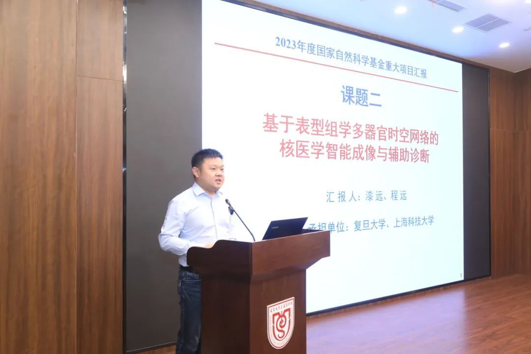 课题二《基于表型组学多器官时空网络的核医学智能成像与辅助诊断》负责人代表、复旦大学人工智能创新与产业研究院副院长、教授程远介绍,该课题涵盖多器官自适应PET智能重建与定量算法构建、多器官多组学时空网络与疾病预测方法开发、PET重建与定量分析平台建设等多个方面,核心目的是利用人工智能技术提升核医学成像和定量图像分析新算法,全栈赋能PET成像与分析,促进神经退行性疾病的早期检测、精准诊断和治疗。目前项目已取得显著成果,包括基于扩散模型的低剂量全身PET重建、基于PET生成模型辅助帕金森病诊断、知识与数据双驱动的荟萃分析筛选潜在表型、PET多模态医学图像大模型的开发以及高质量PET科学数据平台的建设。