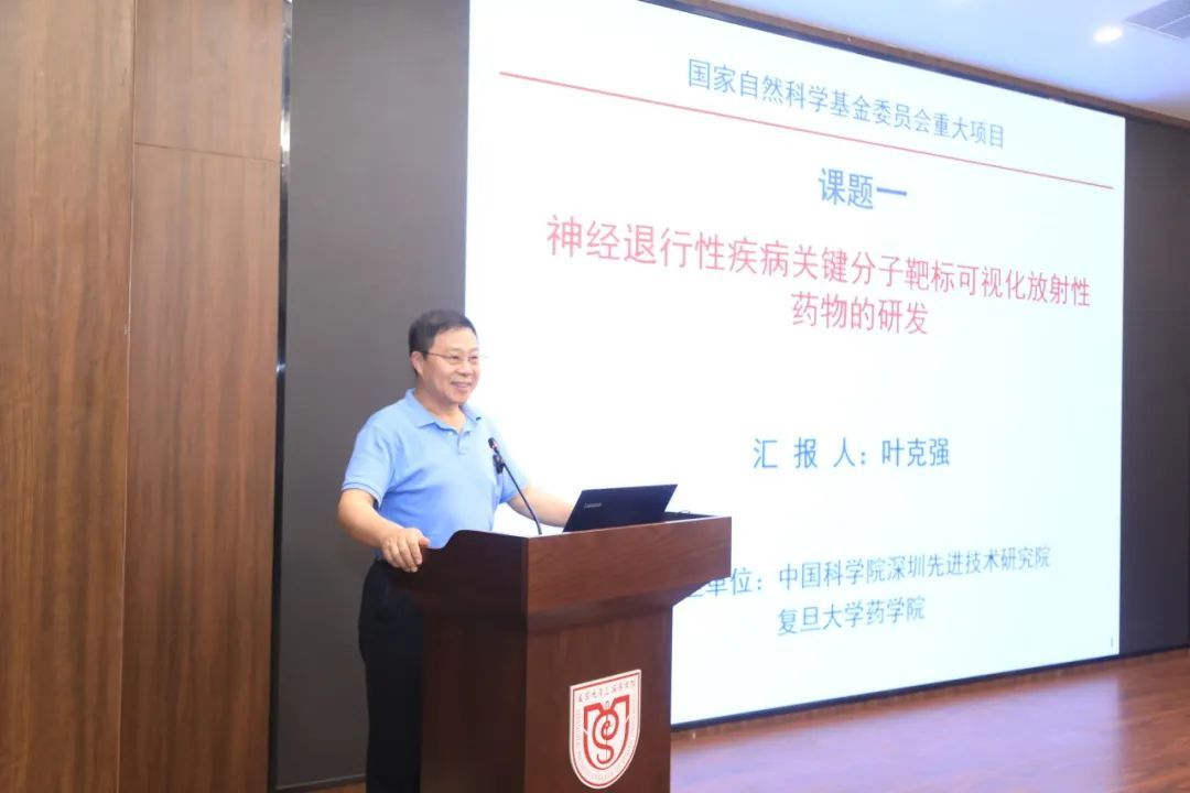 课题一《神经退行性疾病关键分子靶标可视化放射性药物的研发》负责人叶克强介绍了放射性药物的发展背景、标准化的重要性、分子结构的优化以及在临床应用中的潜力。在他看来,如何将这些研究成果应用于临床实践中,特别是通过增强药物的代谢和稳定性来优化治疗方案,是该课题重要的研究方向。课题组将对优选化合物开展动物实验,进行药代学和药效学研究,建立标准的放射标记方法,制备合格放射药物,完成探针药物放射性标记,通过持续的分子设计和药物性能优化,为医疗健康领域做出更多贡献。