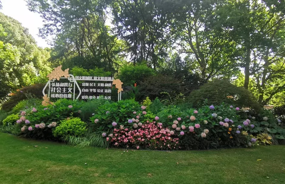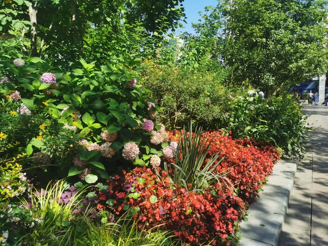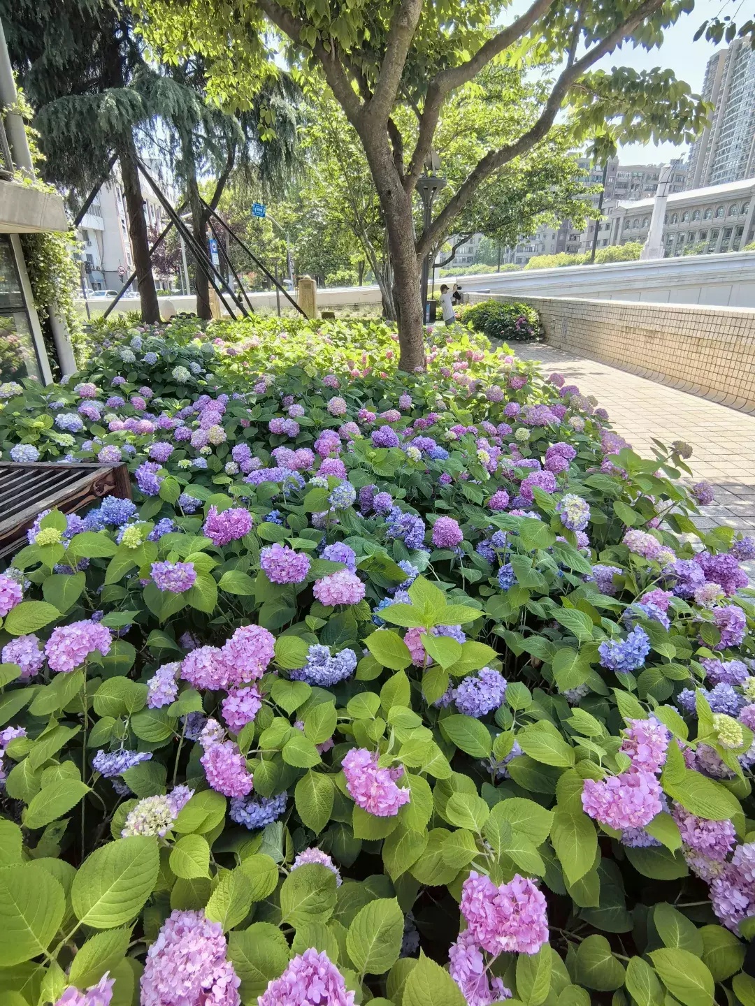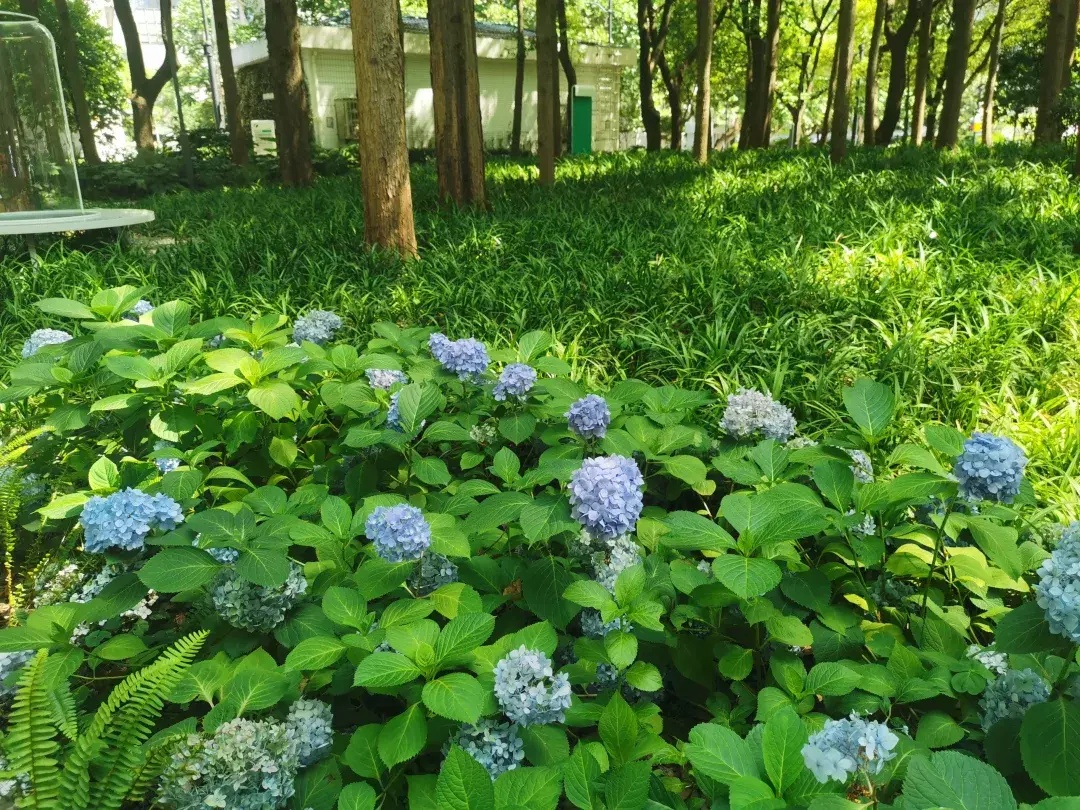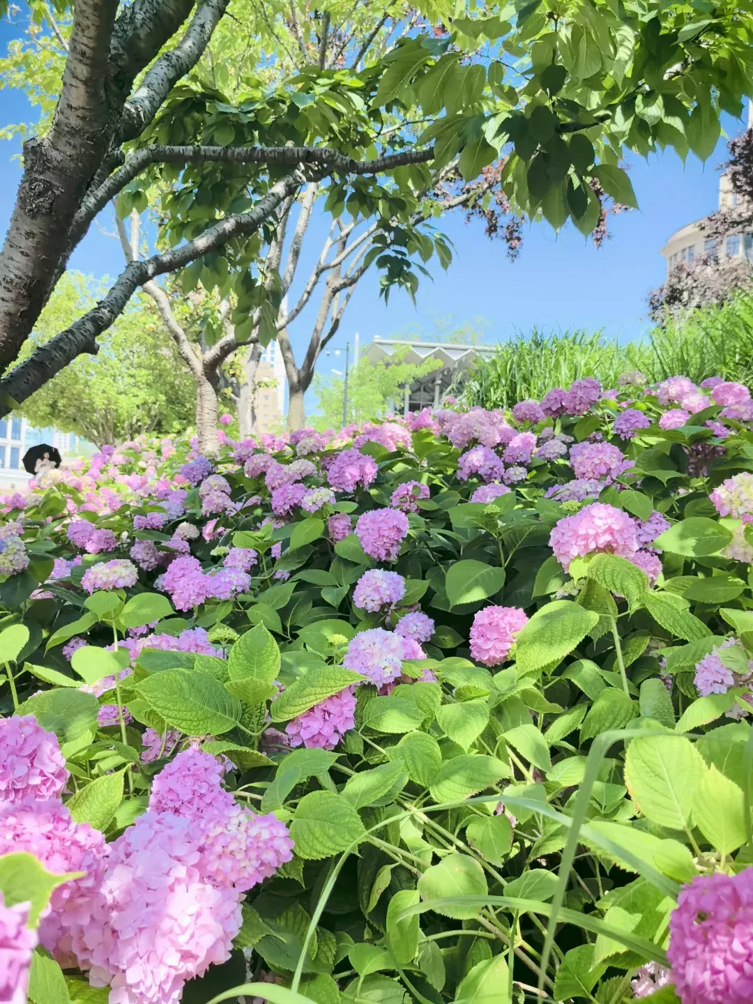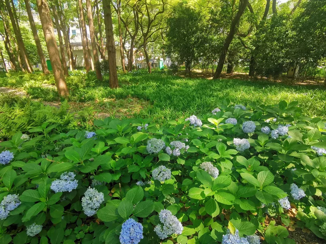 森邻公园位于威海路与武胜路交会处,是个小而精致的口袋公园,园内种植的八仙花多为“无尽夏”品种,其花期长,颜色清新优雅,变色更为梦幻。置身在花丛中,仿佛进入莫奈画笔下的花园,婀娜多姿的八仙花尽收眼底,令人目不暇接,流连忘返。