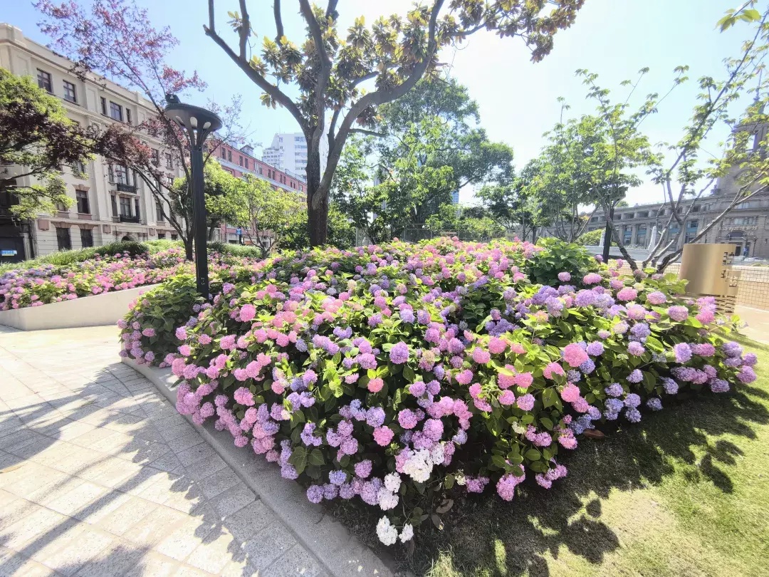 “散作千花簇作团,玲珑如琢巧如攒”,夏日来临,由金外滩集团下属人民公园公司养管的公园、绿地内的八仙花进入了盛花期,丰满的花序压弯了枝条,喜欢的市民可赶紧去打卡。