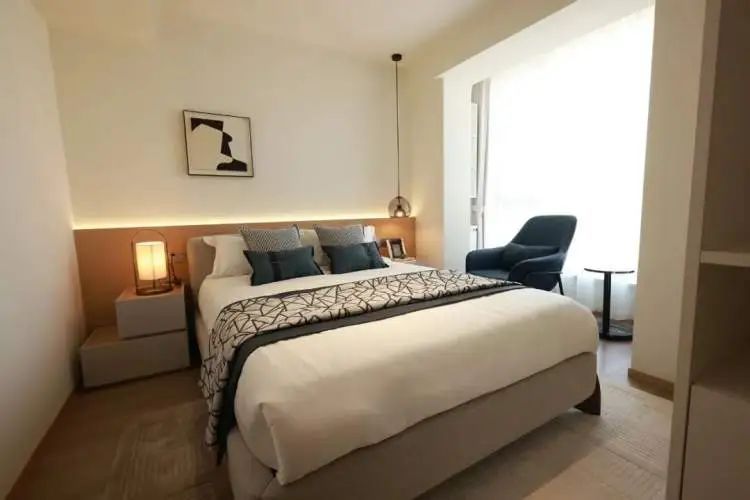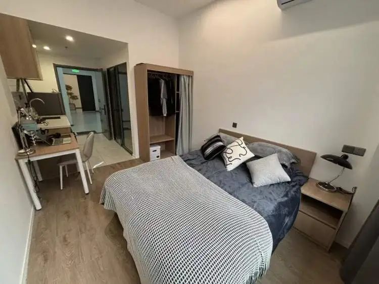 房源方面,项目分为四种户型:户型一(舒适一居),面积25-27㎡;户型二(高级一居A),面积为36㎡;户型三(高级一居B),面积为32㎡;户型四(轻奢一居),面积为45㎡。工作人员介绍,公寓内标配全屋定制家具,储物空间户均超过12m³。同时,配备床垫、沙发、空调、洗衣机、冰箱等家电设施。