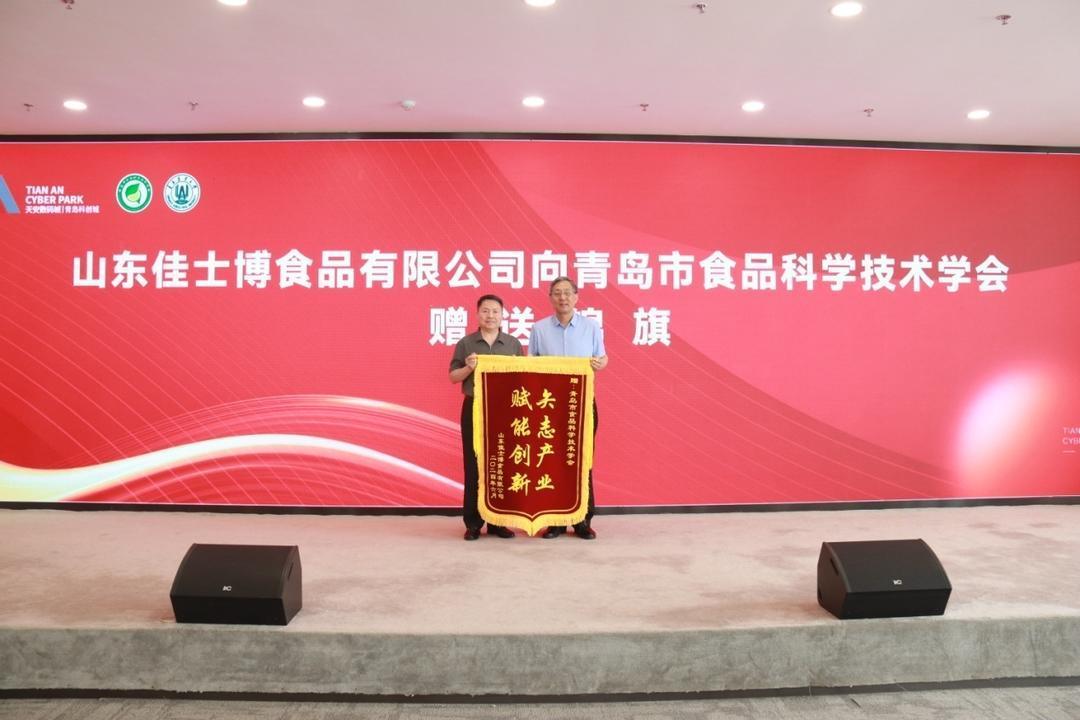 现场,青岛市科协“科技惠企·科创赋能”食品学会服务团启动,并与四家食品产业的企业签订合作协议;青岛市食品科学技术学会“食品产业信息中心”在天安科创城成立,将通过产业信息共享,密切推动学会、高校、科研院所专家与产业对接;山东佳士博食品有限公司党委书记郑钦森向食品学会赠送了锦旗,感谢学会多年来对企业的大力支持和帮助。