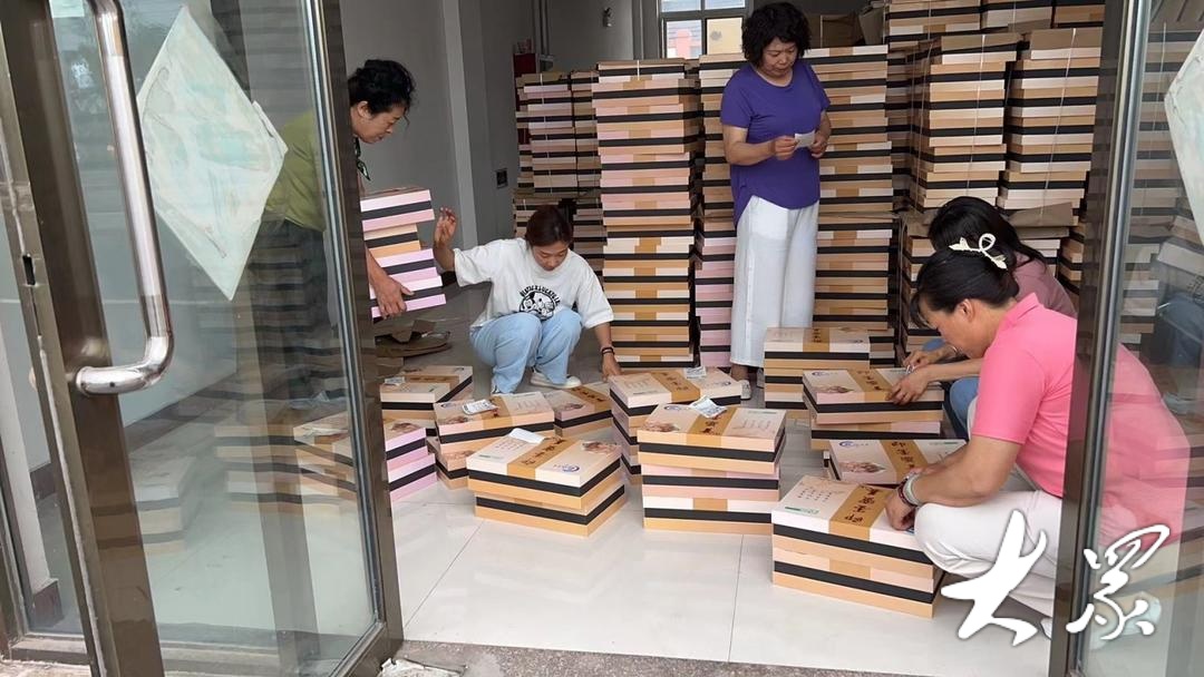 墨河源新村共富公司的工作人员正在根据订单分装产品。