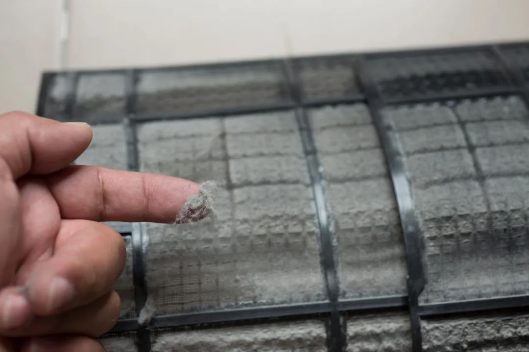 用手一摸,厚厚的一层灰,长时间吹这样的空调,很难不生病。