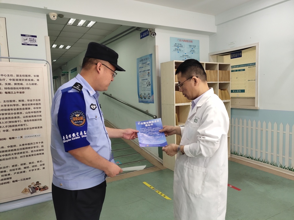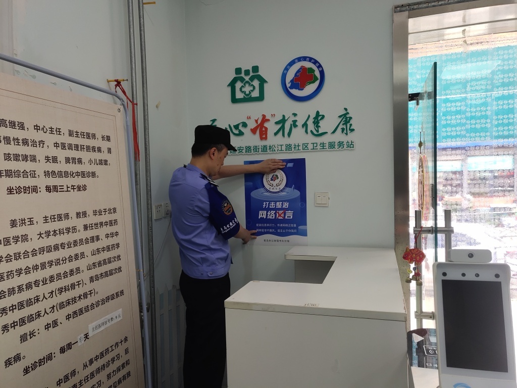 为有效整治网络环境,深入推进打击整治网络谣言专项行动,维护风朗气清的网络家园,6月19日,市北公安分局网警大队联合延安路派出所金盾志愿服务队走进辖区延安路街道松江路社区卫生服务站开展打击网络谣言宣传活动。