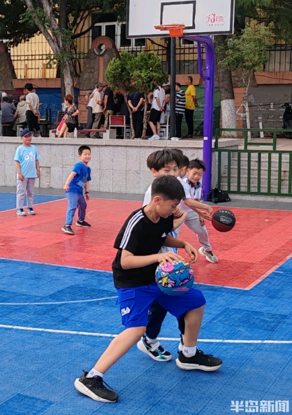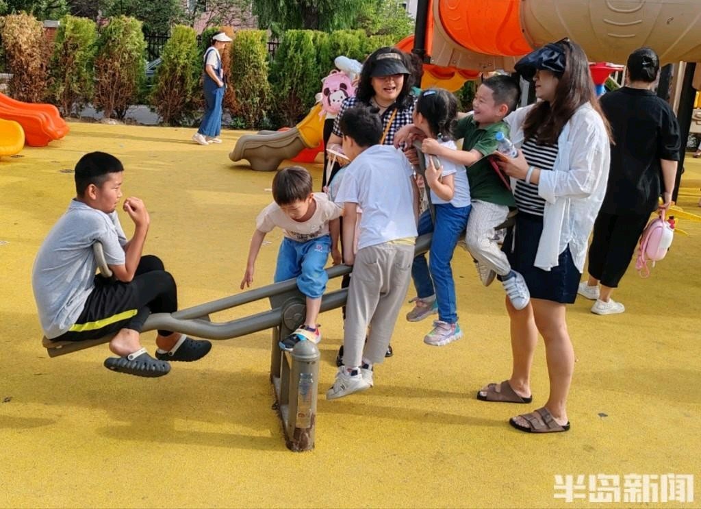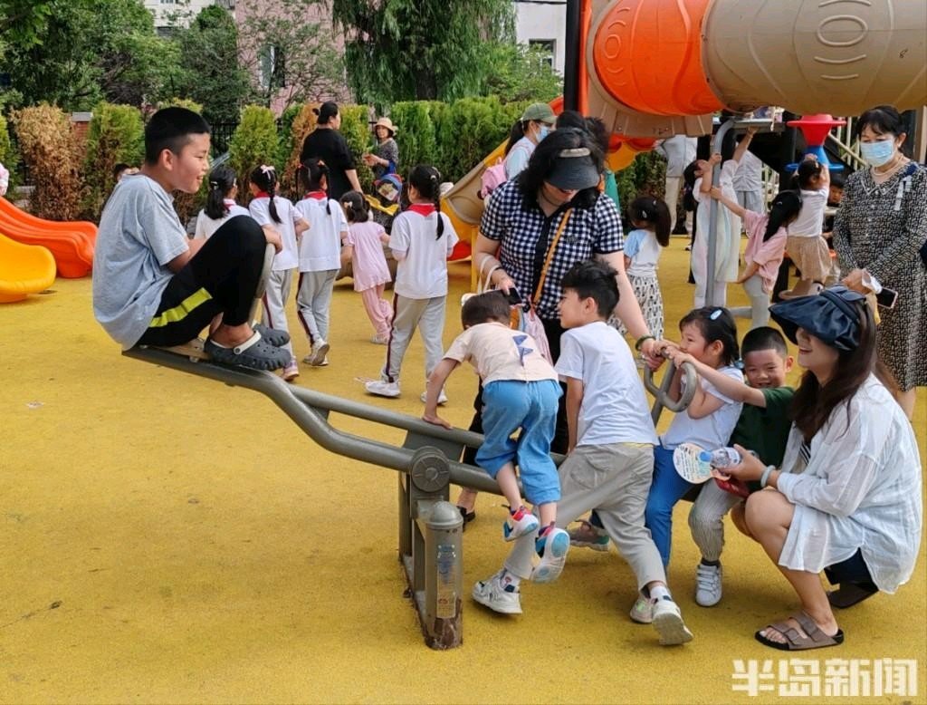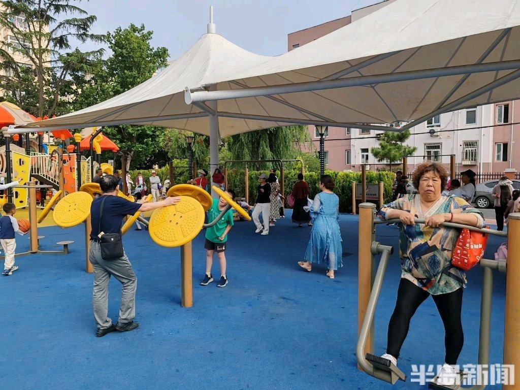 6月20日,青岛市吴兴路附近一社区广场上,不少周边居民特别是小朋友们在这里玩耍休闲。经过前期的建设,社区广场成为居民们的乐园,平日里人气很高,特别是儿童游乐区里的休闲设施有时更是一座难求。