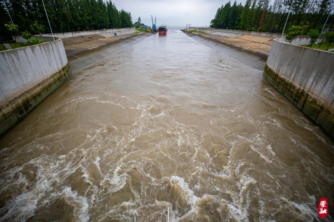 崇明区海塘管理所按照市、区两级防汛指挥部要求,对全岛水闸提前实施预排预降,最大程度降低内河水位,腾出库容防止内涝。