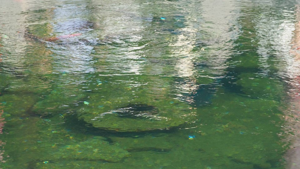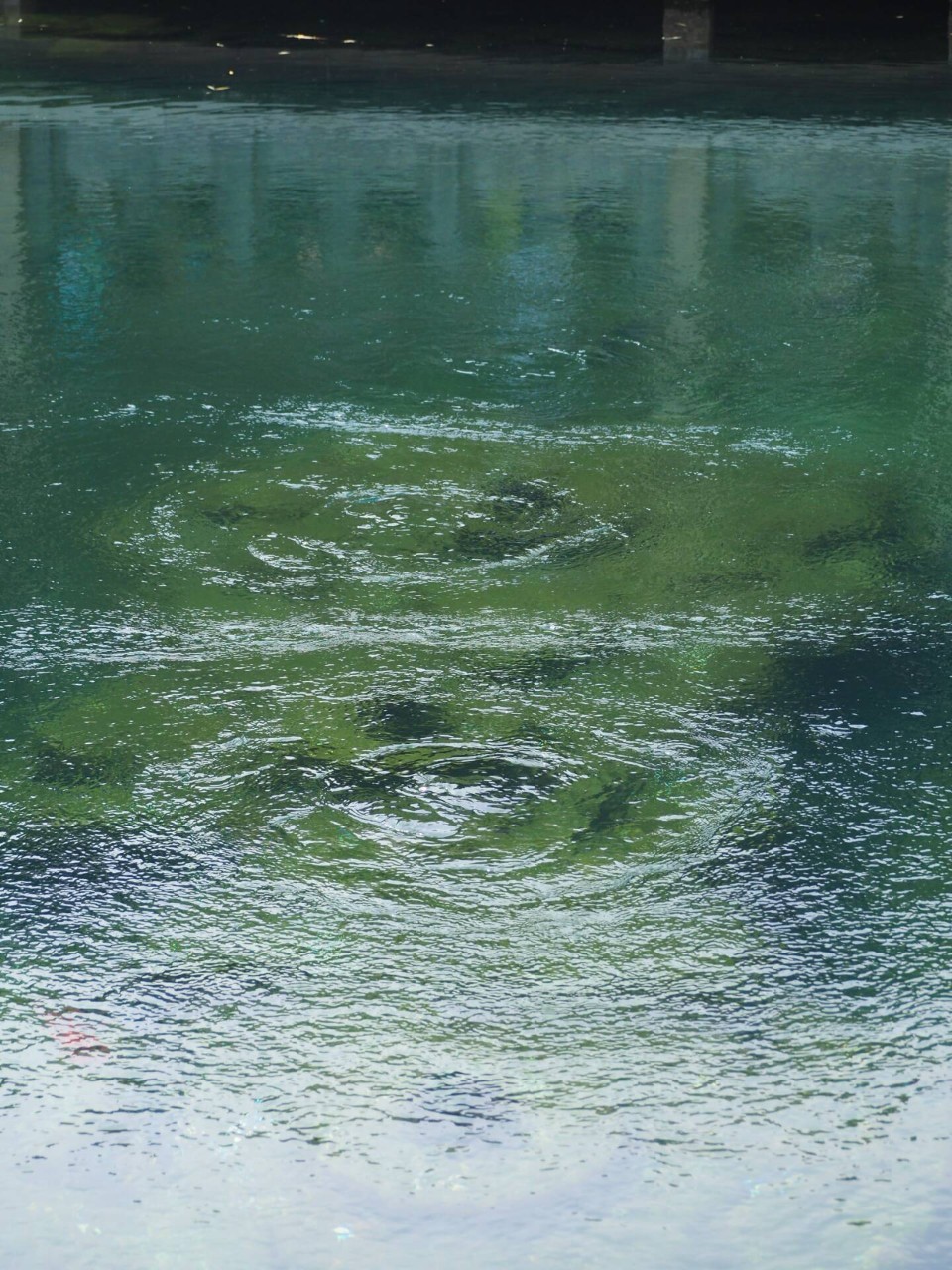 三个泉眼喷涌平稳,能够清晰地看到水纹。