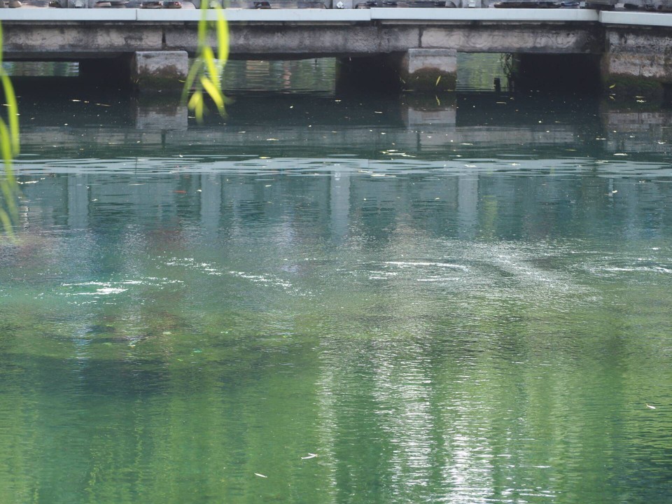 (周青先 济南报道)6月22日早晨,济南趵突泉景区,三个泉眼喷涌平稳,能够清晰地看到水纹,但是浪花已经不见了。