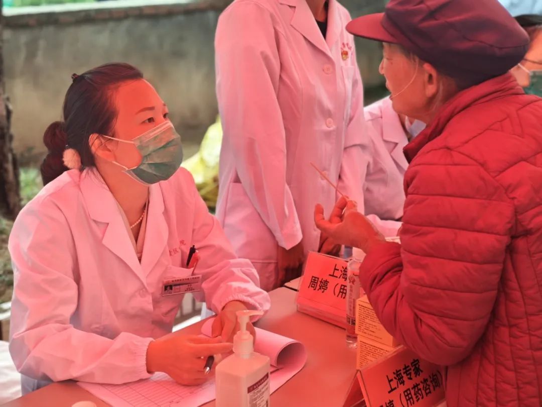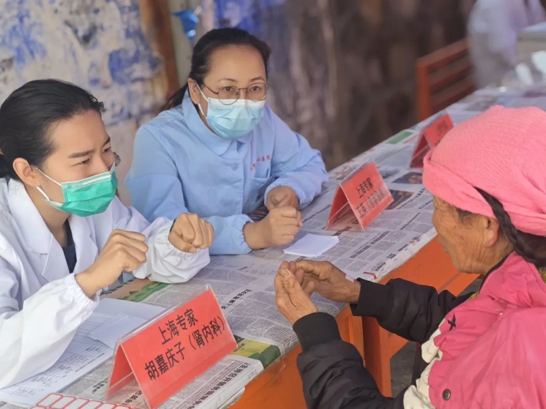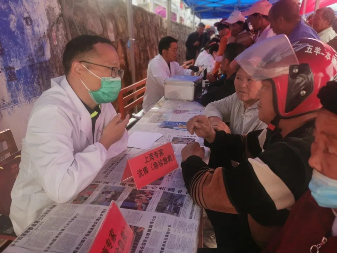 在义诊环节,五位队员为村民们进行了详细的病史询问和体格检查,并针对其状况提供了专业的诊疗建议。