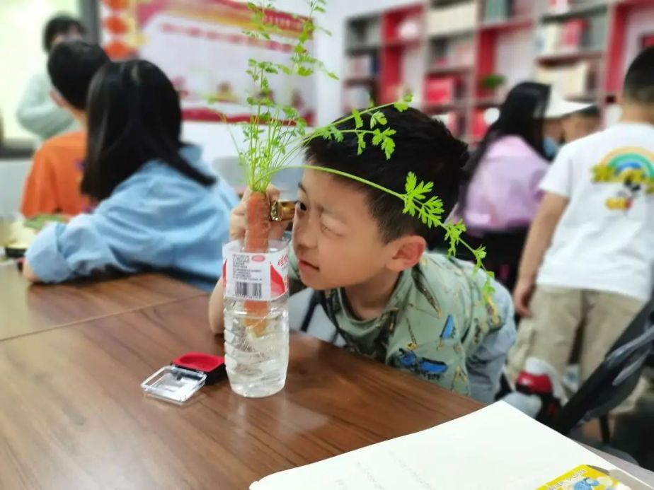 在科普农场建设环节,首批“入住”的植物包括黄瓜和辣椒等蔬菜,西瓜和草莓等水果,小麦和玉米等粮食作物。小朋友们学会了播种、培土、浇水、施肥等基本技能,并亲手将一粒粒种子和一株株幼苗植入土壤中;家长们则在一旁协助,不时与孩子分享自己童年的种植经验。以家庭为单位,亲子争相认领农场植物,自主开展日常浇灌养护,为秋天的“农场丰收节”做准备。