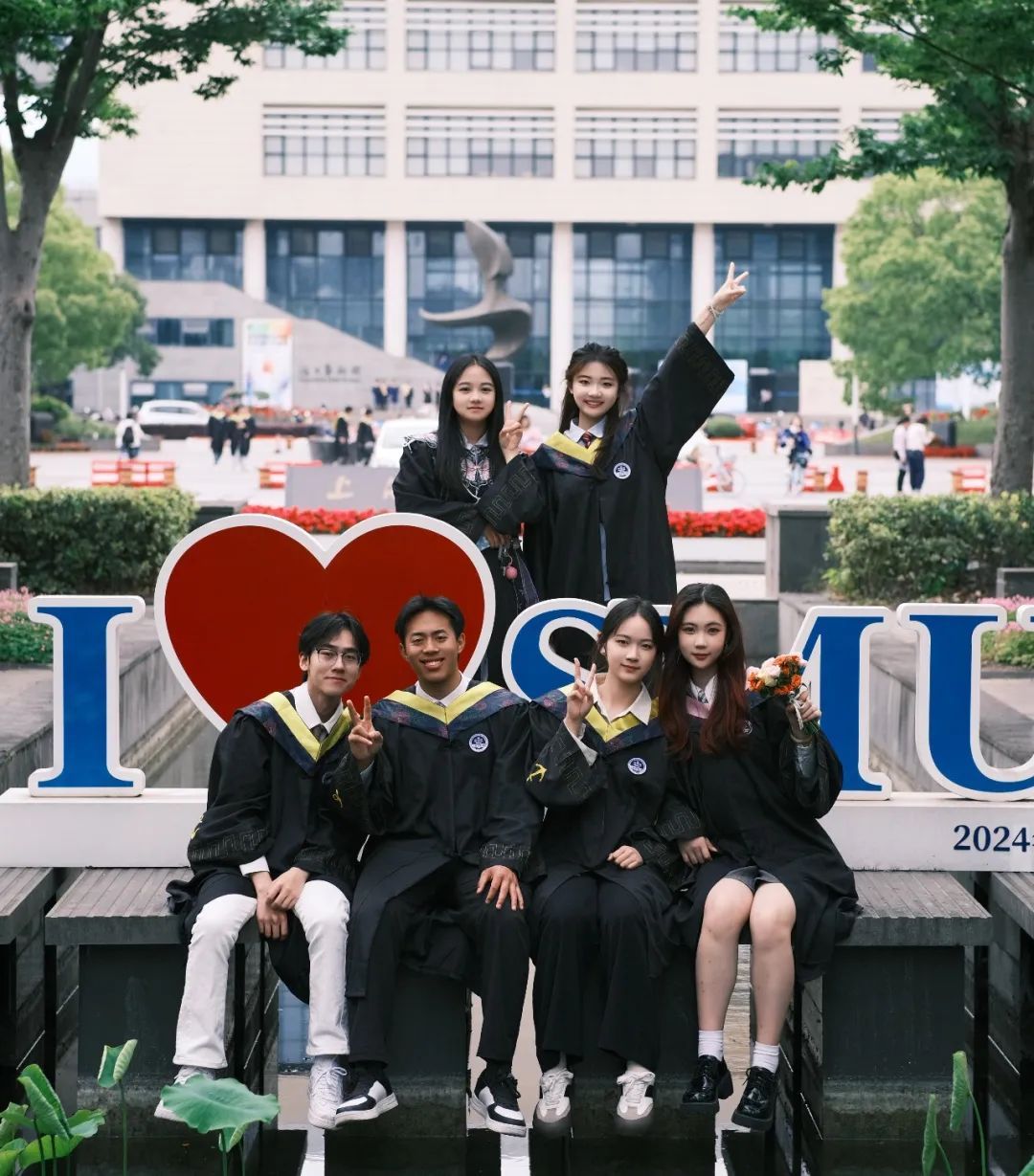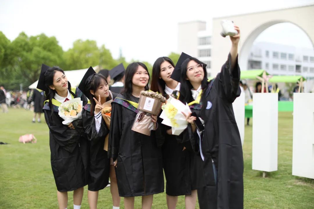 上海财经大学毕业生们在校门口合影,记录下毕业前夕花样的青春