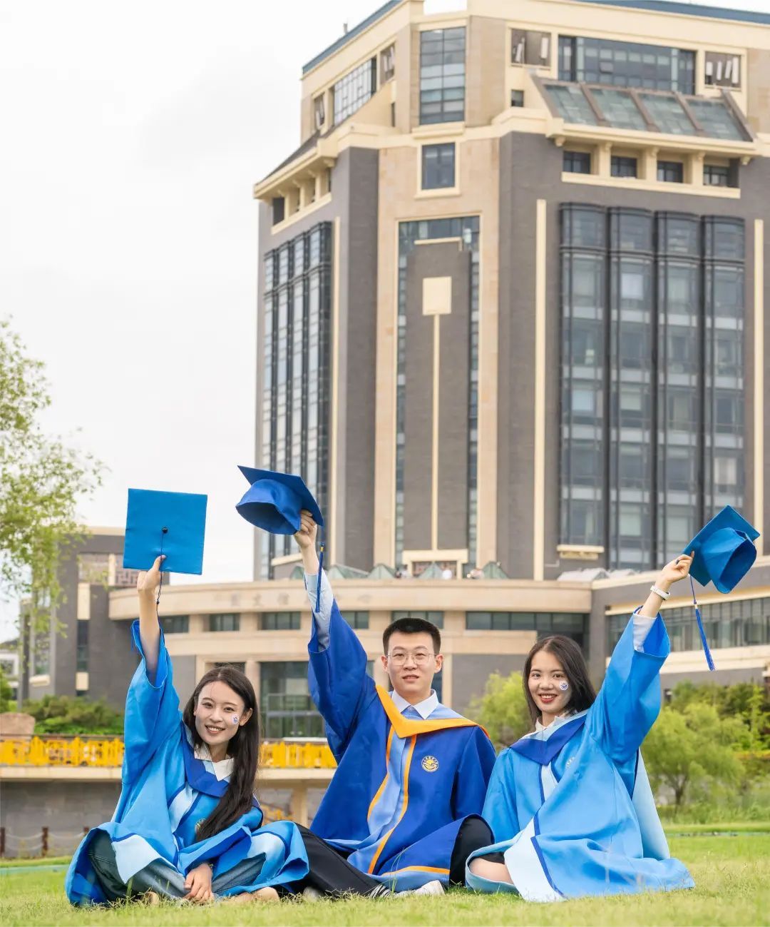在学思楼前草坪上,上海对外经贸大学毕业生自拍合影,记录珍贵的友情上海应用技术大学毕业生在学校七十周年校庆标识前,将学士帽高高抛起,未来定要“飞得更高”对于上海政法学院毕业生来说,上政法学楼是毕业“打卡”的热门之选,因为在这里获得的知识,将惠及一生上海电子信息职业技术学院实训楼前,毕业生们自信走向未来上海杉达学院毕业生们在学校钟楼前合影,高扬的是青春,放飞的是梦想