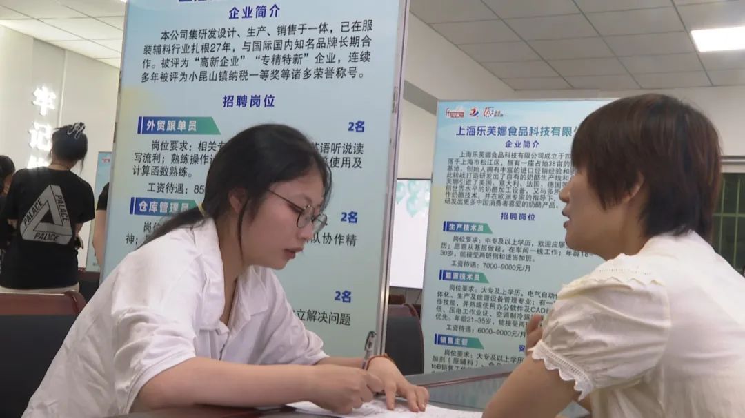 “从家里出发,4分钟就能到达招聘会,找工作很省心!”6月21日上午,40岁的小昆山镇大港片区居民杨文容早早来到大港社区就业服务站,参加2024年百日千万招聘专项行动小昆山镇现场招聘会,并获得了两家企业的面试机会。当天,共有14家企业参与,推出40多个岗位、招聘近200人。