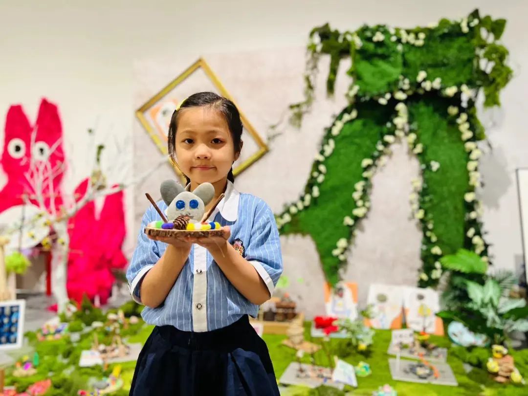 走进展览现场,色彩斑斓的画作、充满童趣的手工艺品以及充满奇思的装置艺术映入眼帘。据了解,这些作品都是孩子们在老师们的引导下,将自己的观察、思考、想象和感受,通过画笔、纸张、布料等各种材料,转化为了一幅幅生动的画面和一件件独特的艺术品。