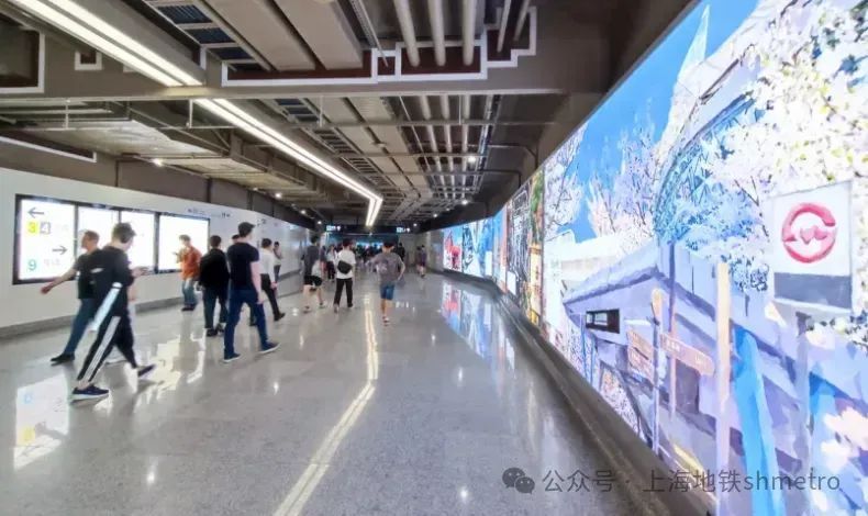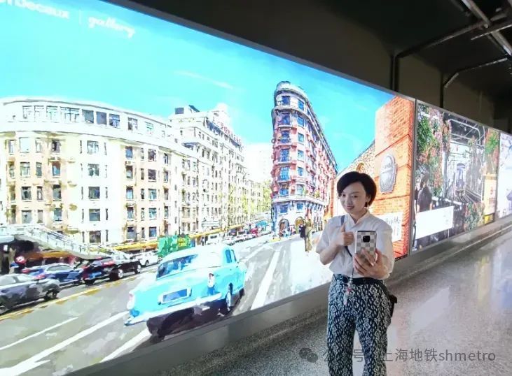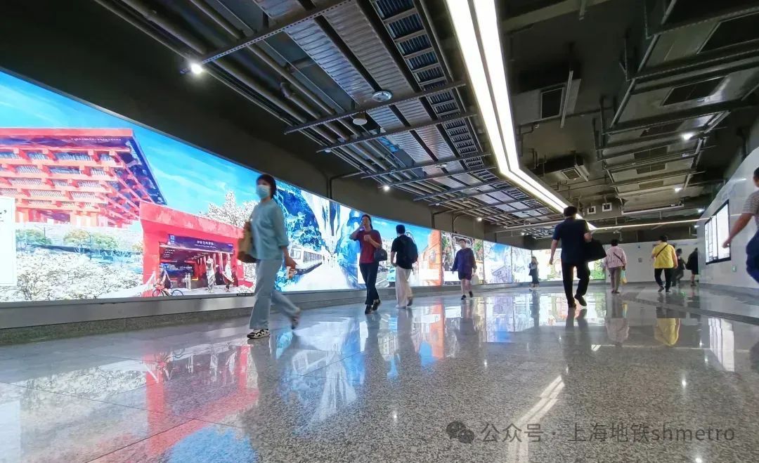 新通道不仅在功能性上作了升级,其文化氛围也不容小觑。两侧墙面电子大屏上显示着“淮海中路”“大柏树”“中华艺术宫”等大家熟悉的“最美车站”,不仅美化了环境,也成为一道独特的风景线,引得众多乘客驻足欣赏,甚至拍照留念。