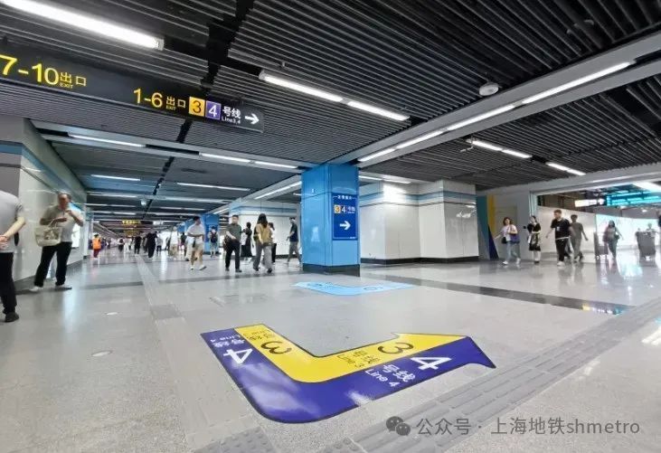 此前,旧通道9号线与3号线换乘时间约5分钟,9号线与4号线换乘约8分钟。新通道中,9号线与3号线换乘时间相对有所增加,约8分钟;9号线与4号线换乘则因为不用再通过3号线的2F站厅,时间缩短至6分钟左右,总体上乘客的满意度显著提升。一位女士感慨道:“这个通道我走了好几年了,上学的时候就在走了,这次变化很大。也很符合上海地铁形象,有了这个通道也不怀念原来那个‘蔬菜大棚’了。”