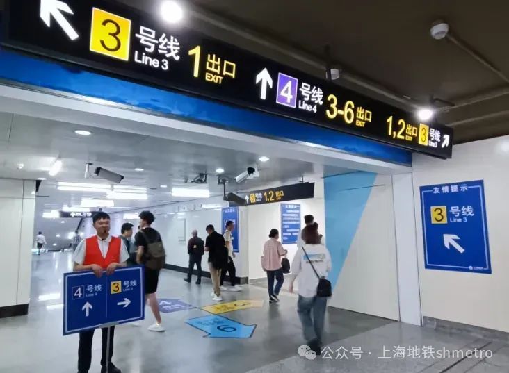 为有效应对高峰时段的客流压力,宜山路站根据最新的客流数据和实际情况,重新模拟了客流动线,并进行了详细的评估。针对周末换乘通道通勤情况,在工作日早高峰7:30--9:30实施单向逆时针换乘,在4号线换乘平台处进行分流,南侧为换入,北侧为换出,减少客流对冲,保障乘客有序出行。同时,宜山路站优化导向标识,增配人员引导,增派工作人员在换乘通道分流点,通过手持牌进行宣传引导,为乘客提供更加清晰的走行路径,乘客根据现场的导向及工作人员指引有序通行。而在新换乘通道里,依旧遵循靠右侧行走原则,保障往来换乘客流通行安全有序。下阶段,宜山路站将持续做好客流观察,根据高、低峰期客流情况,不断完善客运组织方案,优化导向标识引导。