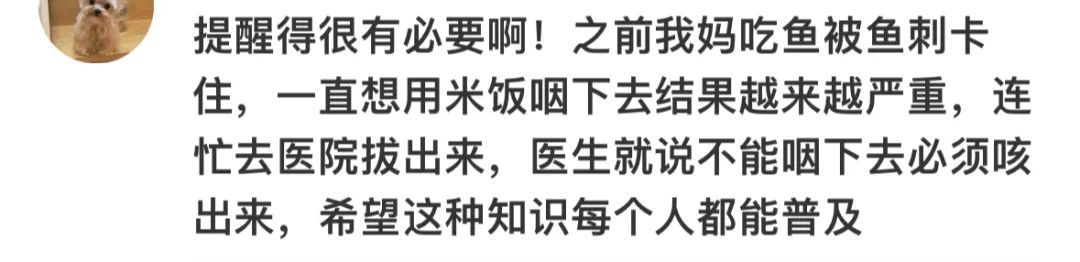 张杰提醒大家:遇到小骨头卡住,切记不要强行咽下,务必及时吐出,保障自身安全!