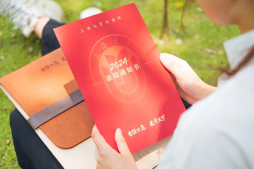 2024年上海大学为每一位本科新生精心准备了录取通知书套袋,外包装采用“档案袋”的设计理念,既是来自全体上大人的美好祝愿,也是记录每一位新生开启奋斗历程的起点。