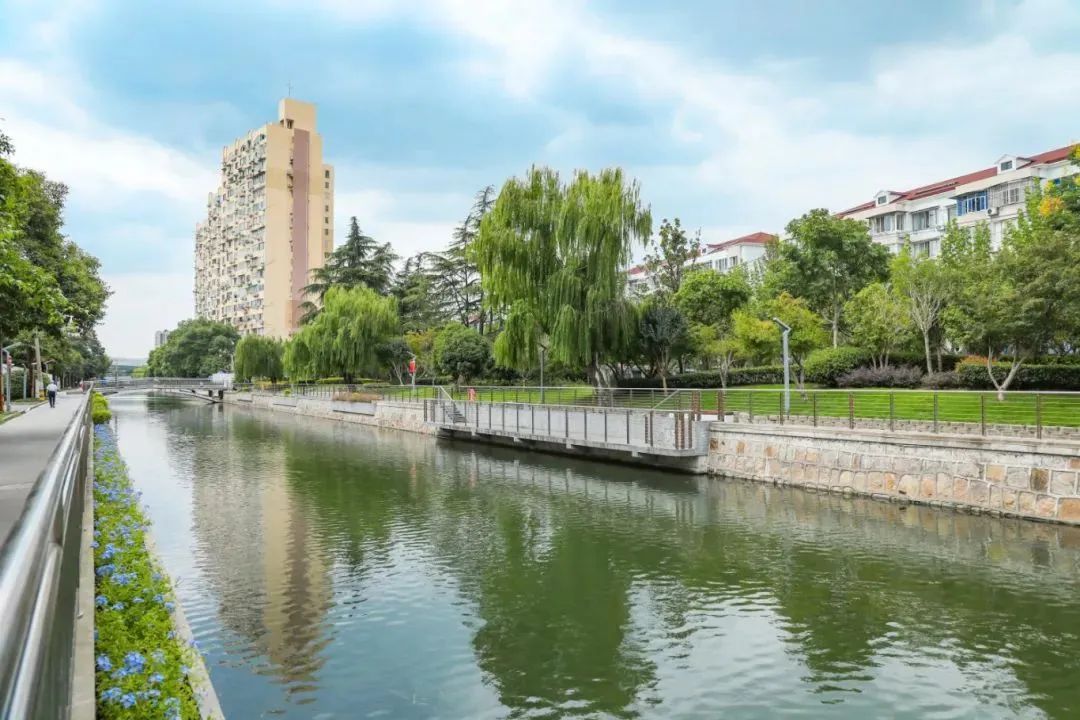 曾经的北潮港,河水污浊、水质发绿、透明度低。2016年11月,北潮港进行了水生态修复工程,依托于“食藻虫引导的水下生态修复技术”,恢复了河道健康的水下生态系统,获得河道水质、生态环境“双提升”。由沿河小区居民组成的“渔老头”护河志愿者团队,投身于“水岸同治”护河行动中,有效助推了徐汇区水环境治理工作。现在的北潮港,水体清澈透明,水质稳定,景色优美,犹如一幅人水和谐的生态画卷。